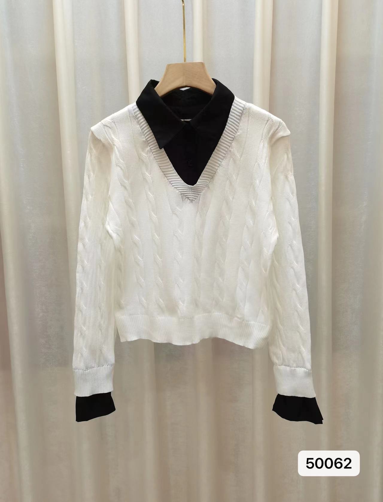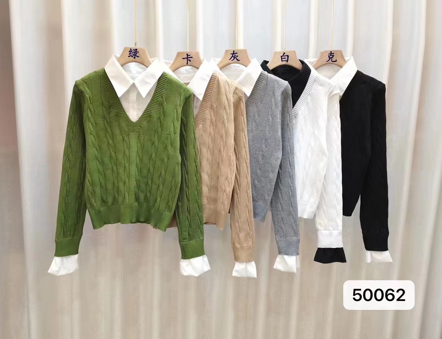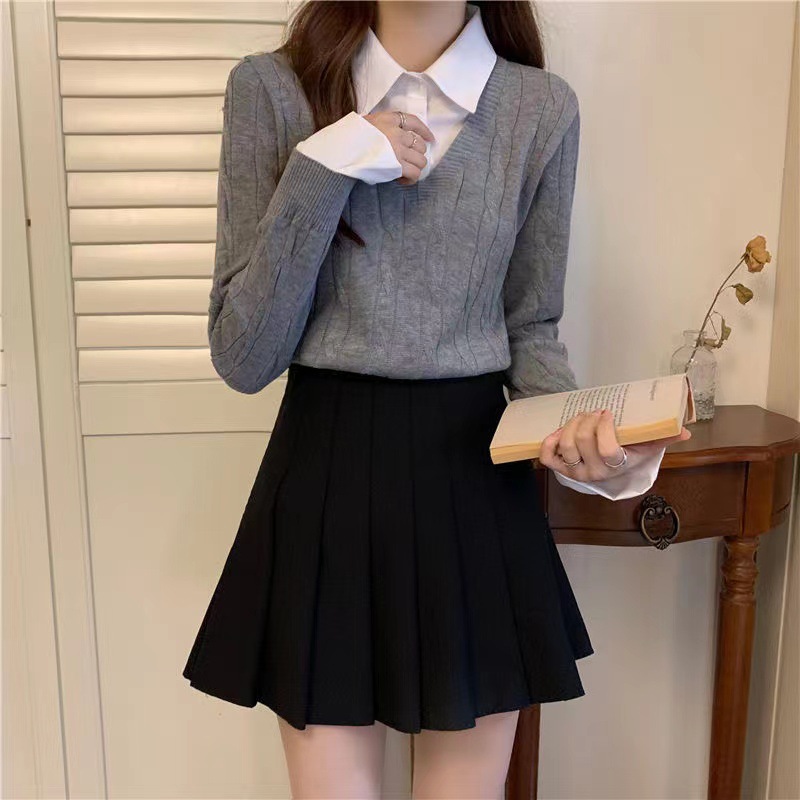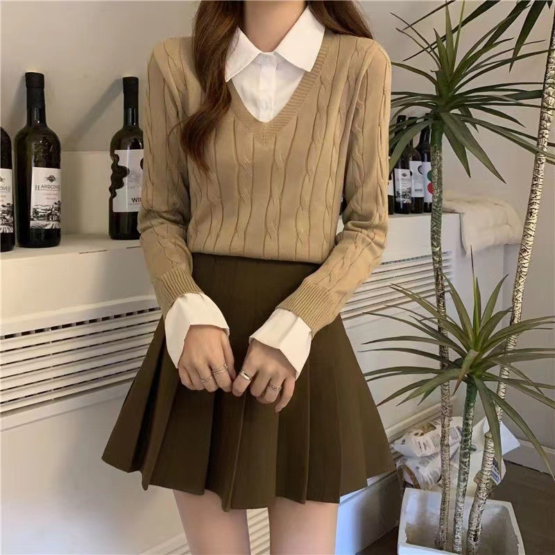 옷깃 스티치 셔츠 가짜 투피스 니트웨어 가을과 겨울 새로운 아카데미 스타일 스벤 스타일 인테리어 긴팔 탑스토어 가기