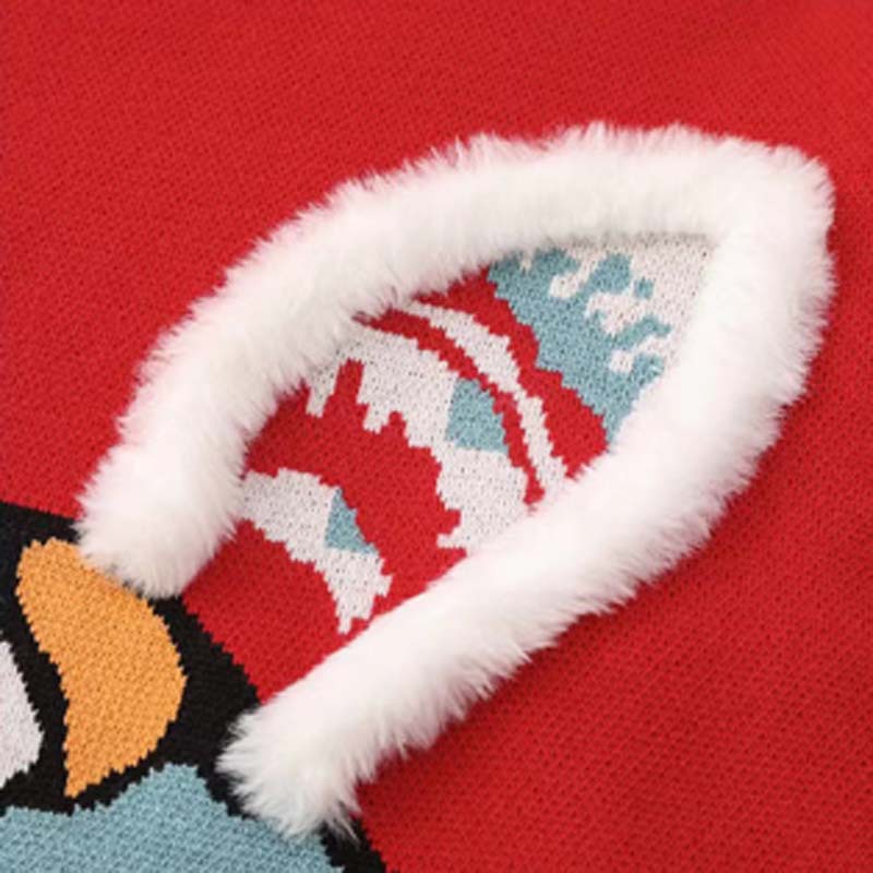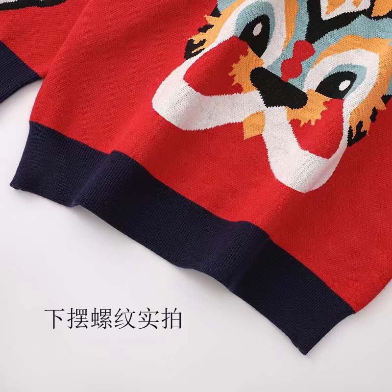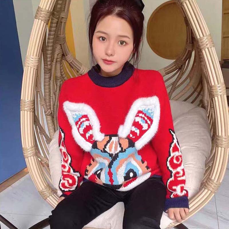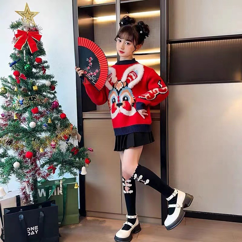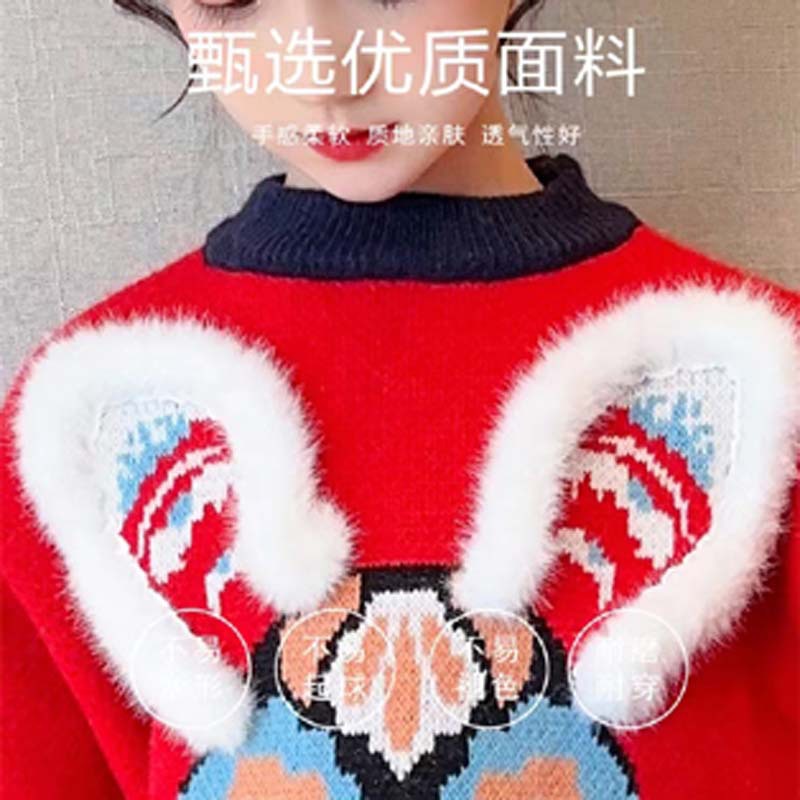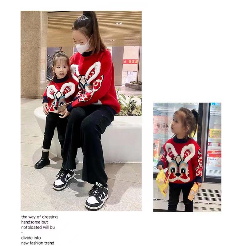 새로운 부모-자녀 어머니-딸 의류 토끼 귀 자카드 패밀리 매칭 의상 두꺼운 만화 라운드 넥 긴 소매 빨간색 스웨터스토어 가기
