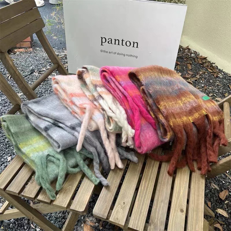 레인보우 스카프 겨울 두꺼운 모조 캐시미어 숄 여성의 한국 모든 매치 니트 격자 무늬 예술적 복고풍 따뜻한 목스토어 가기