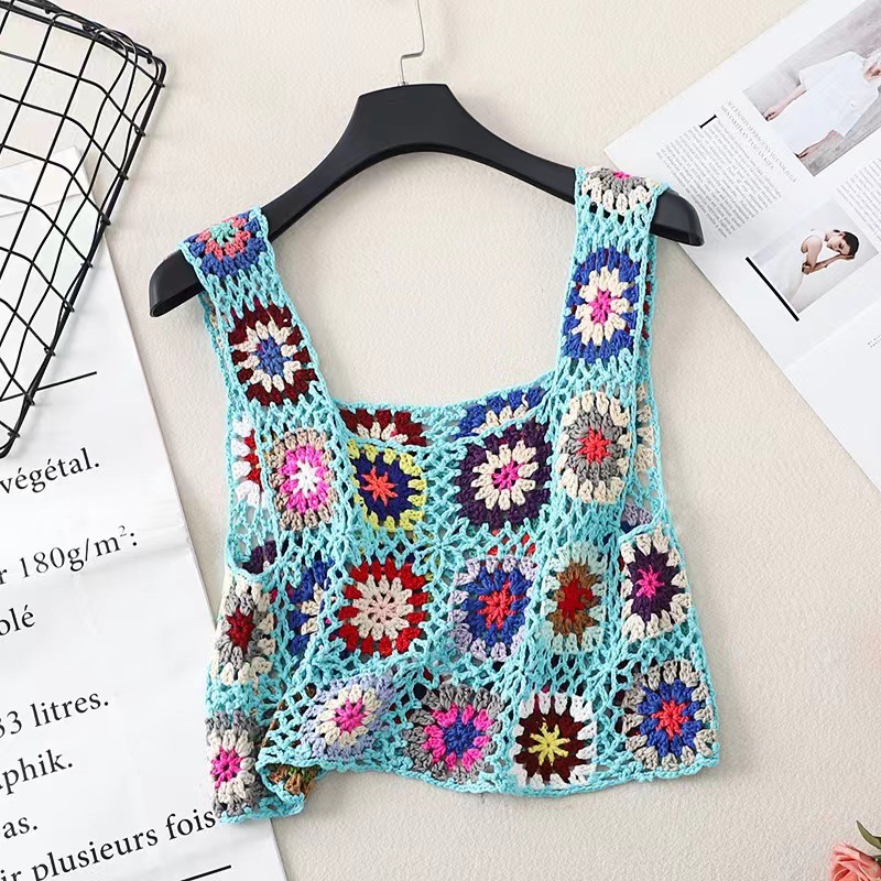 手钩拼接的花块颜色随机搭配,与模特图并非一致,介意者勿拍!