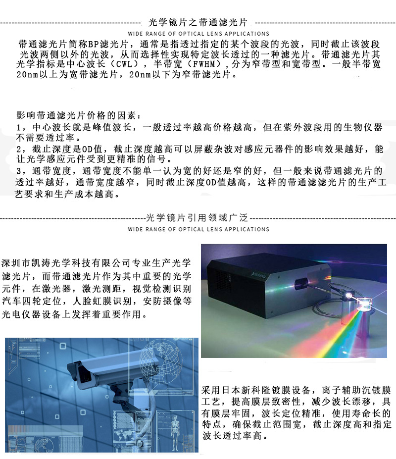 Kaitao 635nm 대역통과 필터 적외선 의료기 레이저 측정기 PCR 형광 필터 커스터마이징