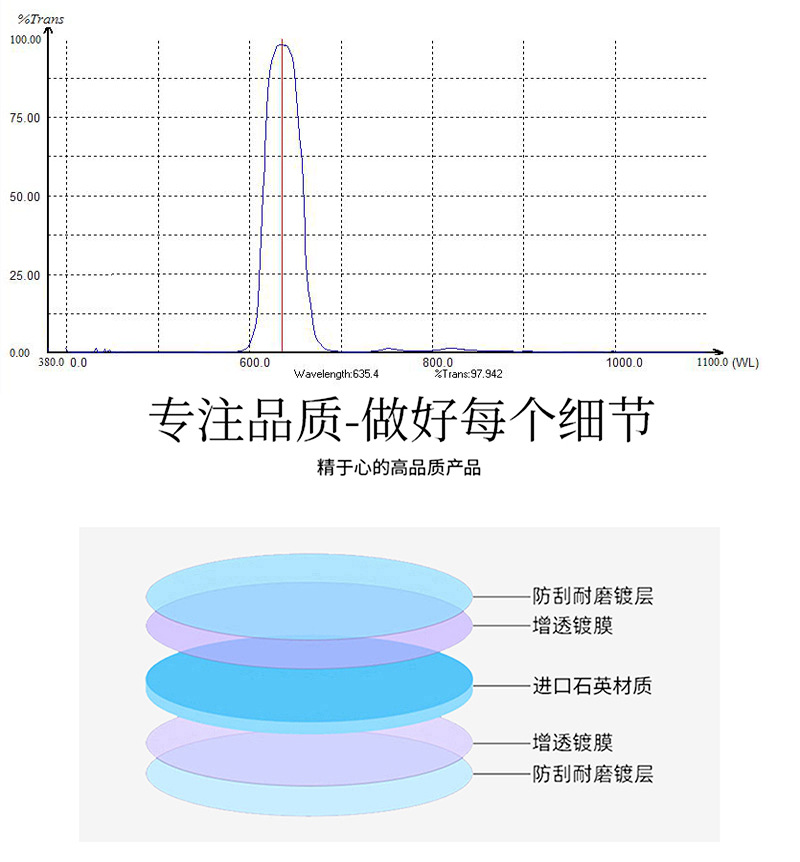 Kaitao 635nm 대역통과 필터 적외선 의료기 레이저 측정기 PCR 형광 필터 커스터마이징스토어 가기