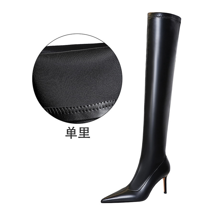315-A16 유럽과 미국 패션 섹시한 나이트 클럽 슬리밍 간단한 롱 부츠 얇은 굽 하이힐 무릎 길이 이상의 뾰족한 다리스토어 가기