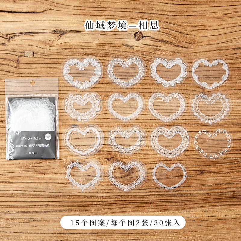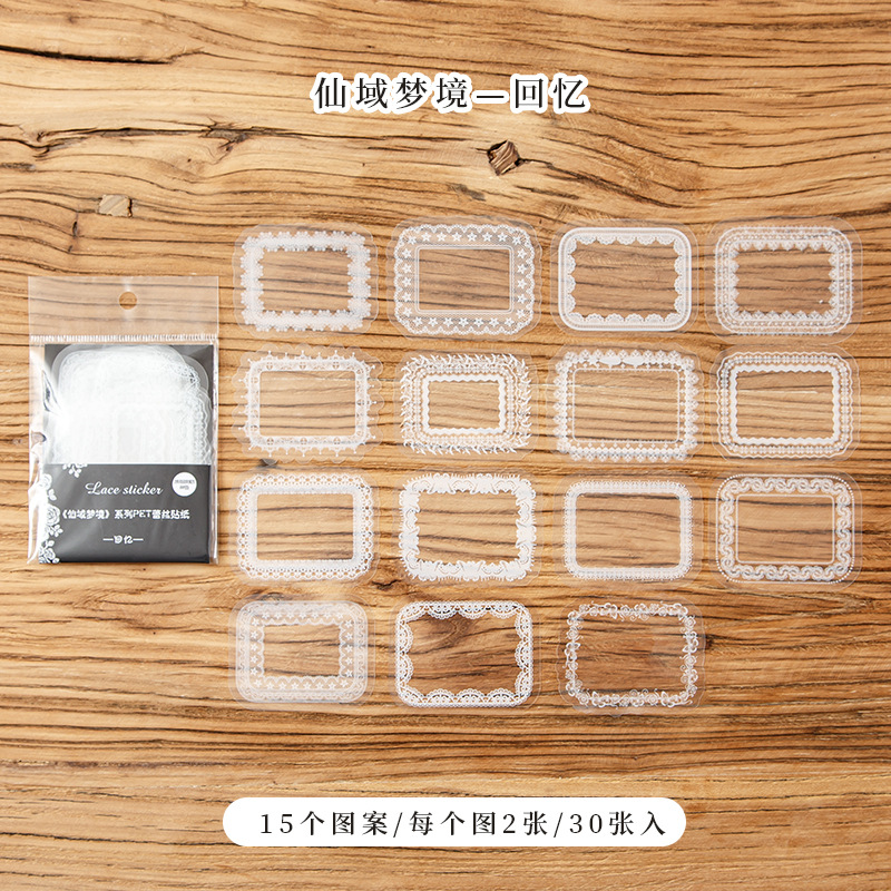 수제 DIY 드라이플라워 스티커 레이스 테두리 PET 스티커 투명 창의적 스티커 장식 북마크 드라이플라워 ST