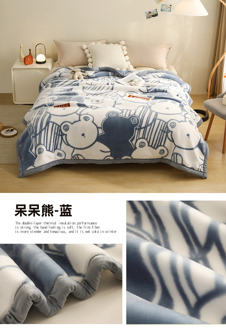 Raschel 담요 가을과 겨울 기숙사 학생 침대 담요를위한 이중층 두꺼운 따뜻한 산호 플란넬 이불스토어 가기