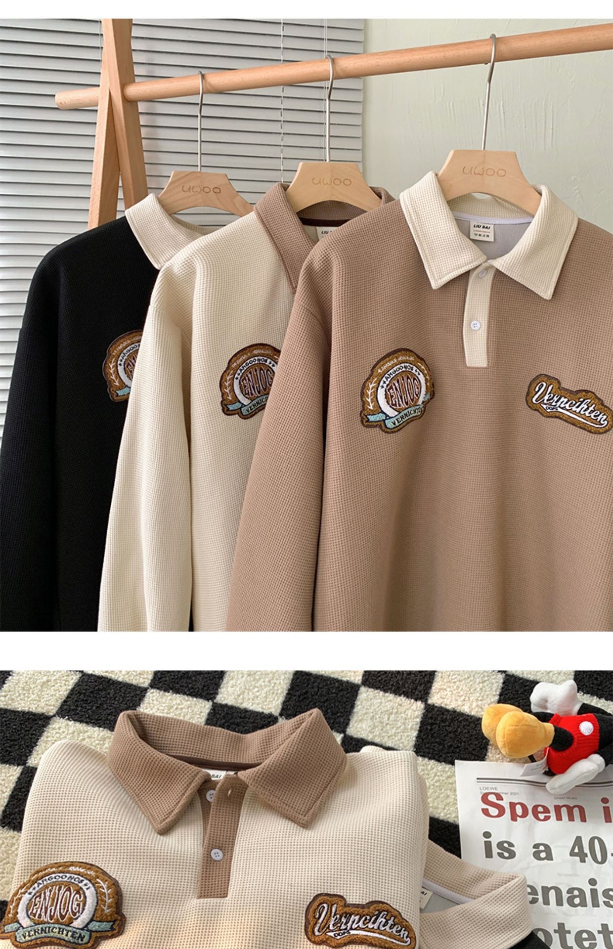 와플 폴로 스웨터 남자의 봄과 가을 유행 브랜드 자수 옷깃 미국 스타일 복고풍 무거운 연인 긴 소매 재킷스토어 가기