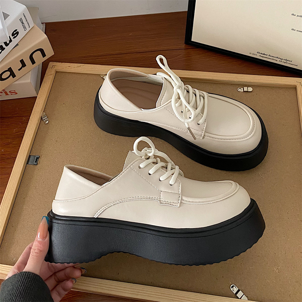 작은 가죽 신발 여성의 영국 스타일 2022 새로운 가을과 겨울 기모 일본 복고풍 흰색 레이스 업 두꺼운 밑창 메리 제인 신발스토어 가기