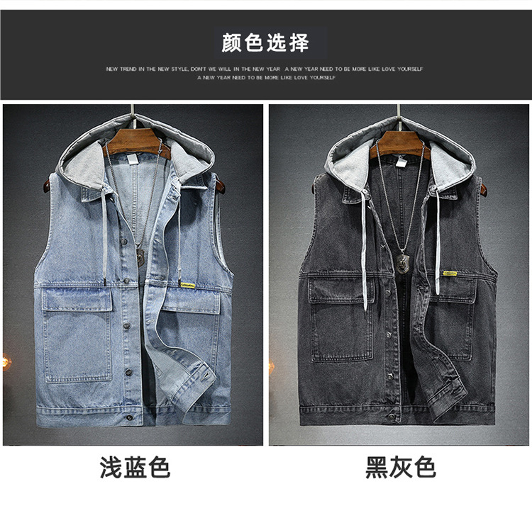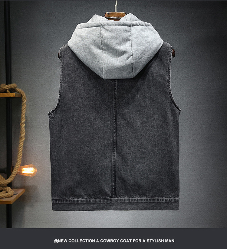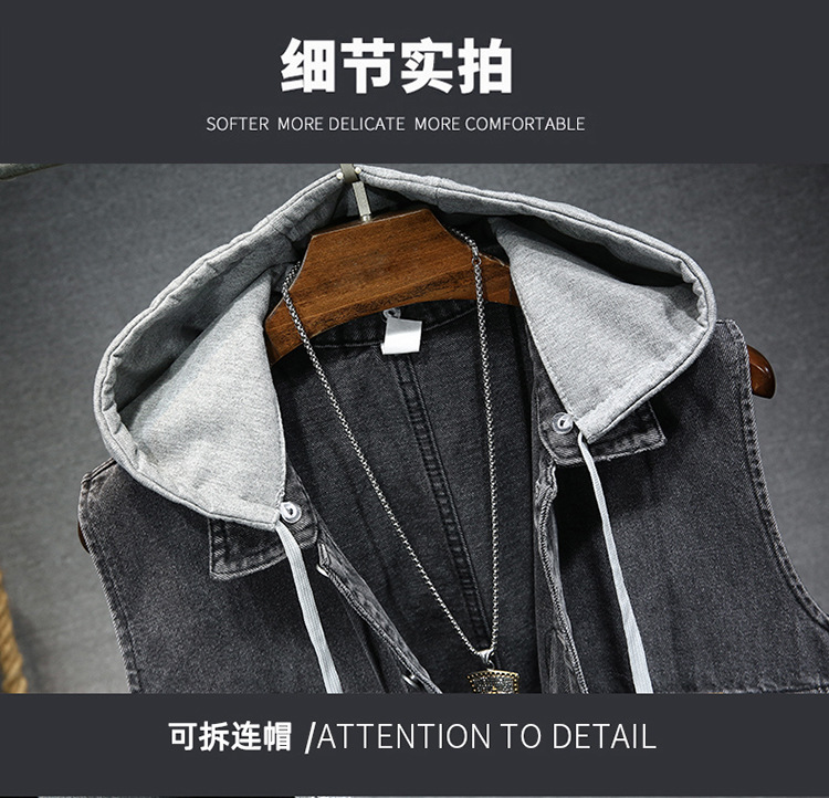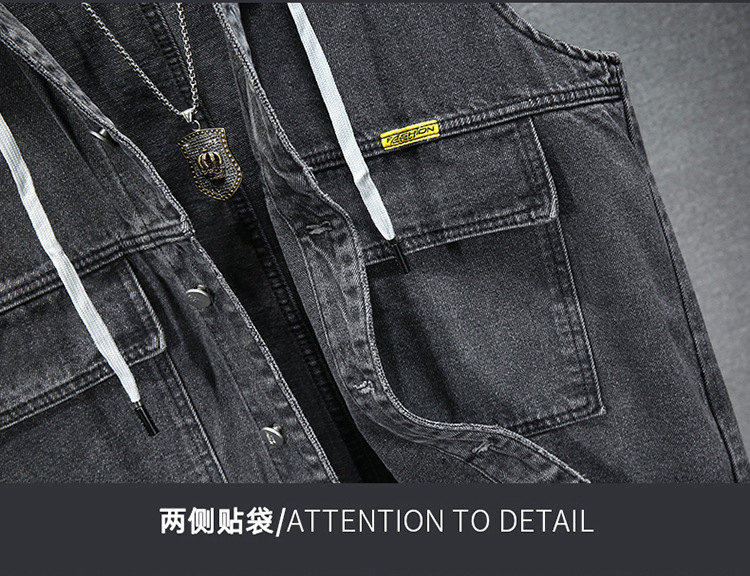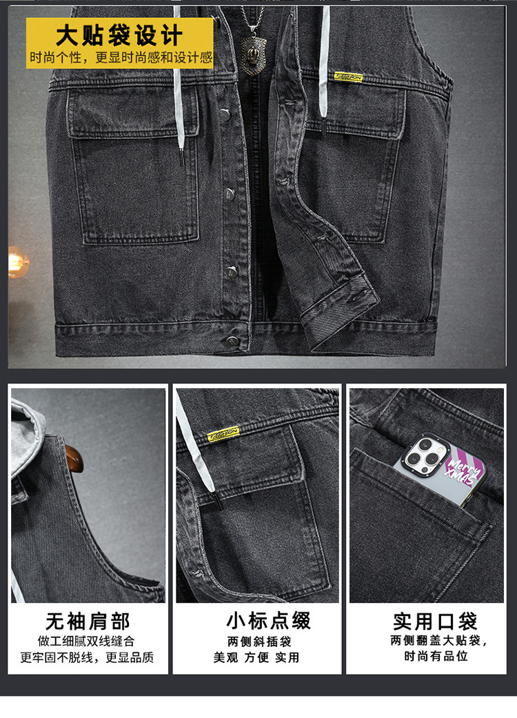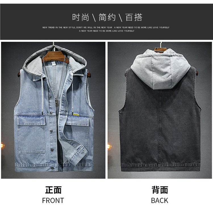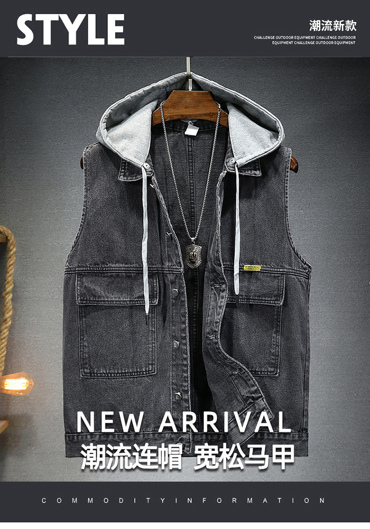 2025 새로운 유행 남성과 여성의 같은 스타일 양복 조끼 조끼 사계절 느슨한 패션 분리형 후드 데님 조끼 남성용스토어 가기
