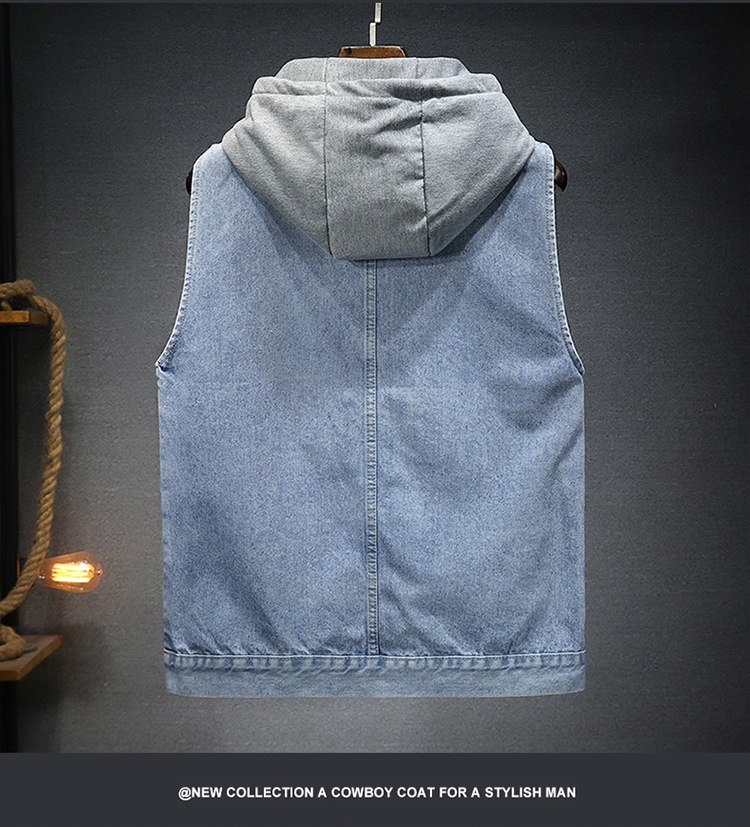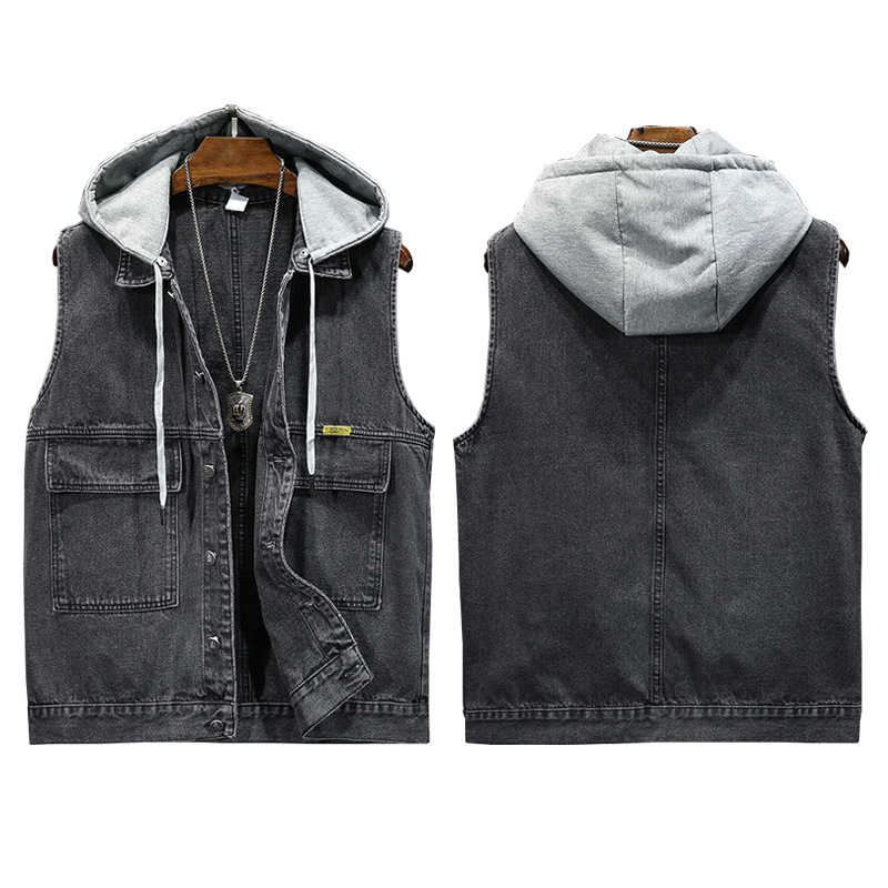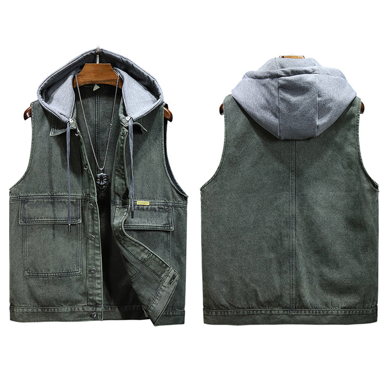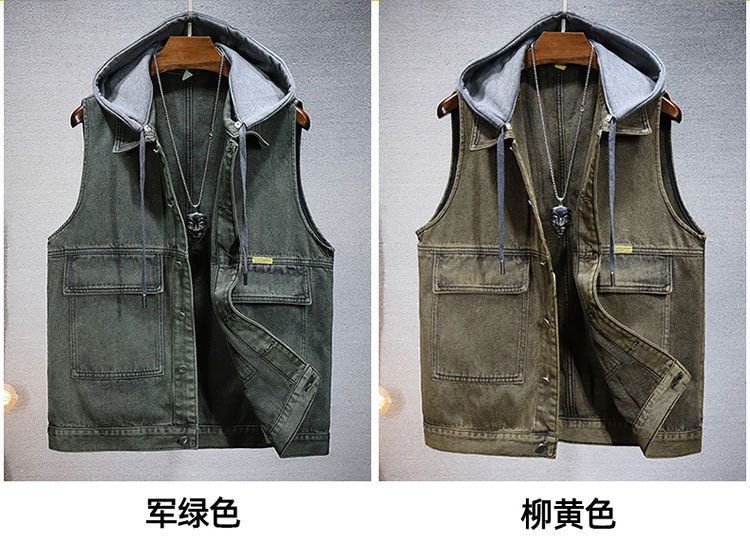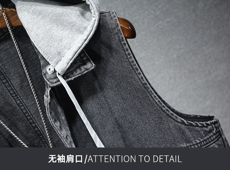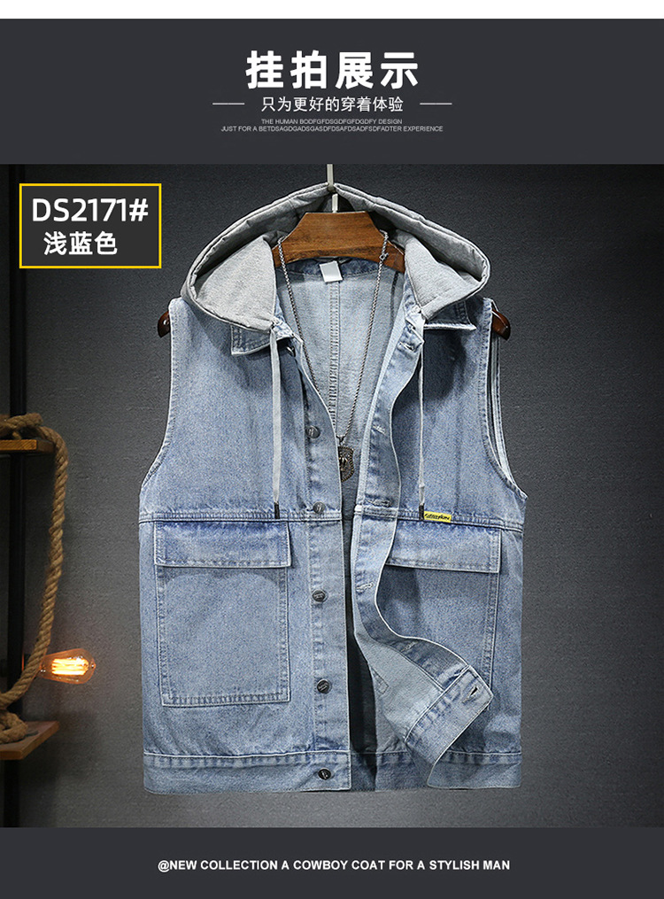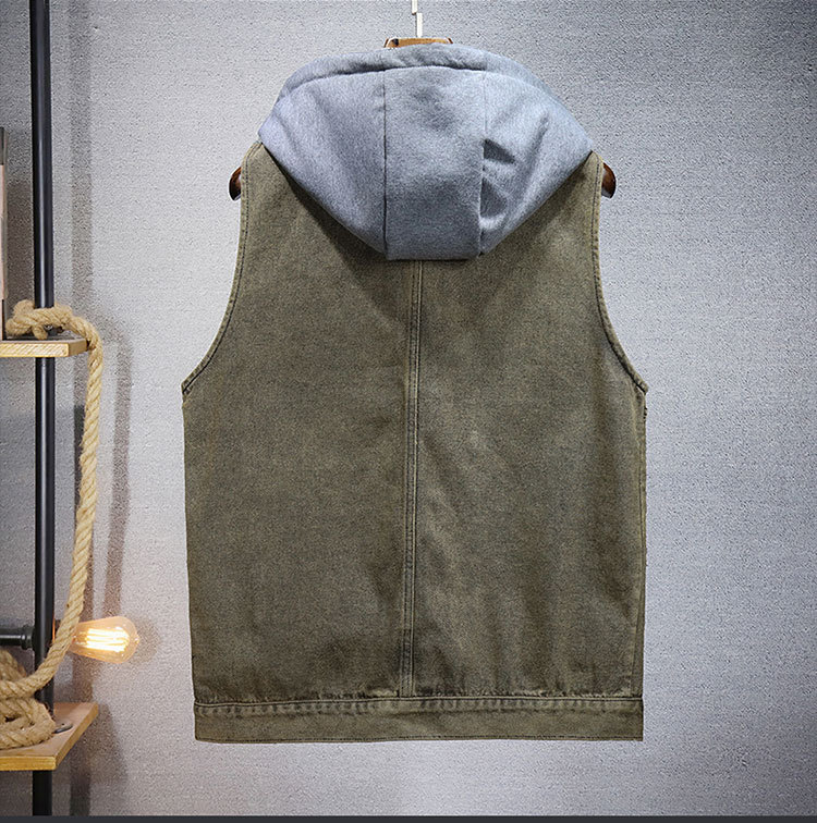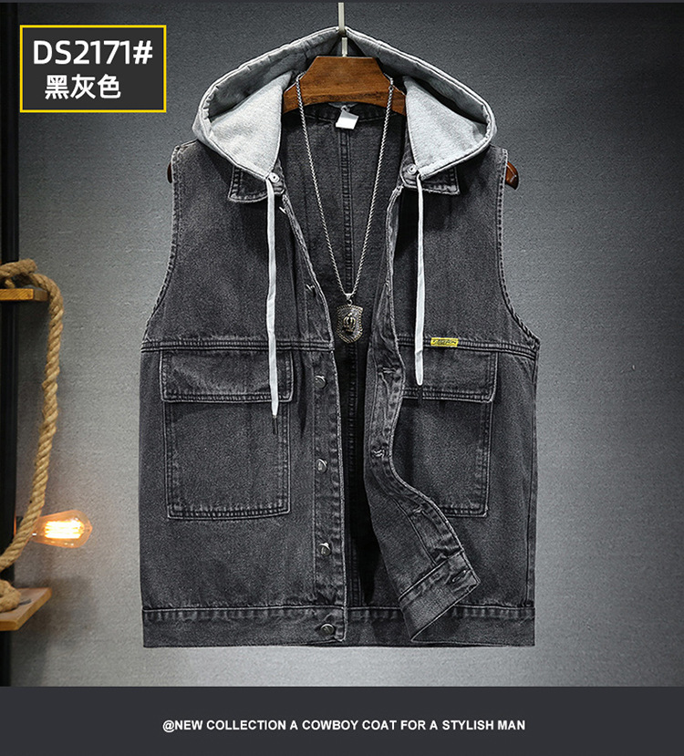 2025 새로운 유행 남성과 여성의 같은 스타일 양복 조끼 조끼 사계절 느슨한 패션 분리형 후드 데님 조끼 남성용스토어 가기
