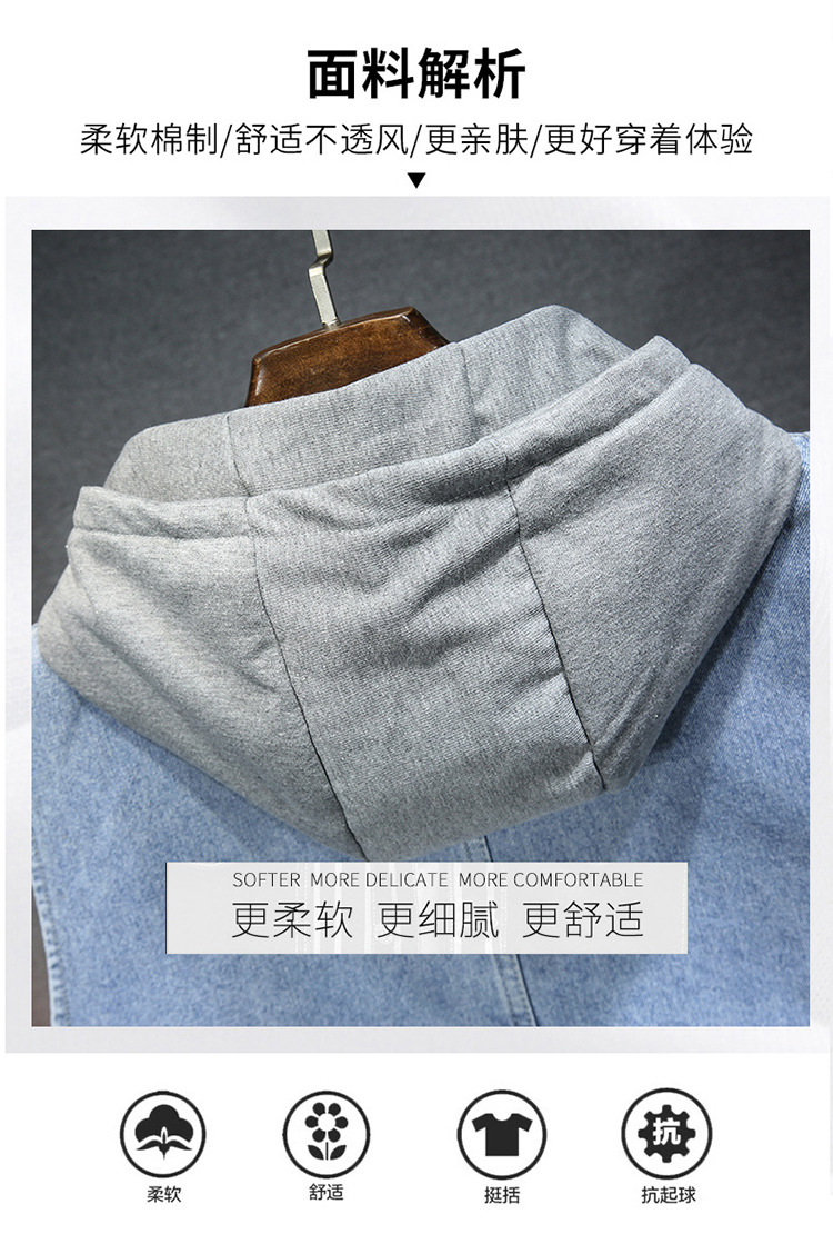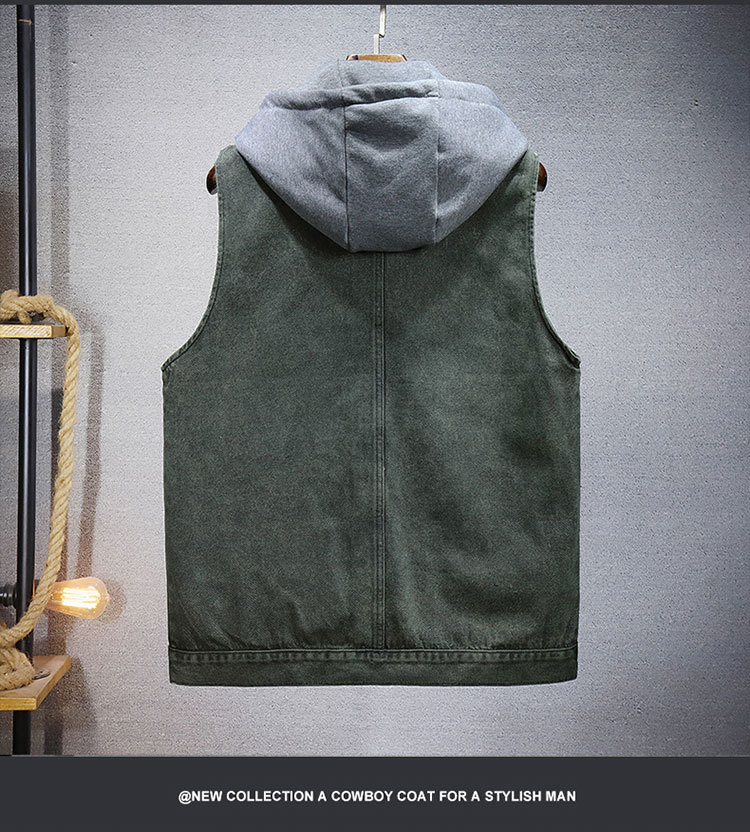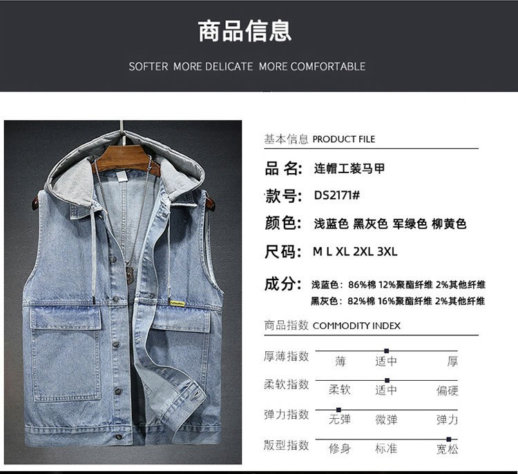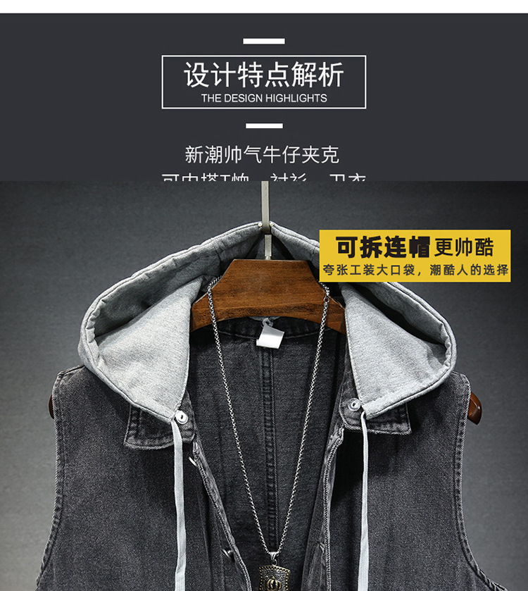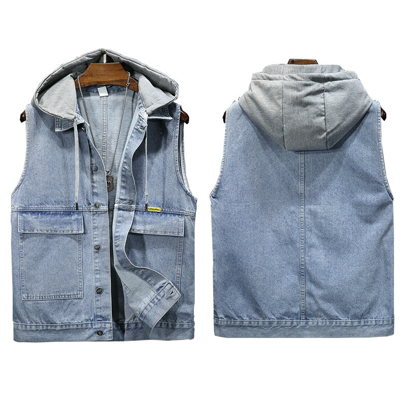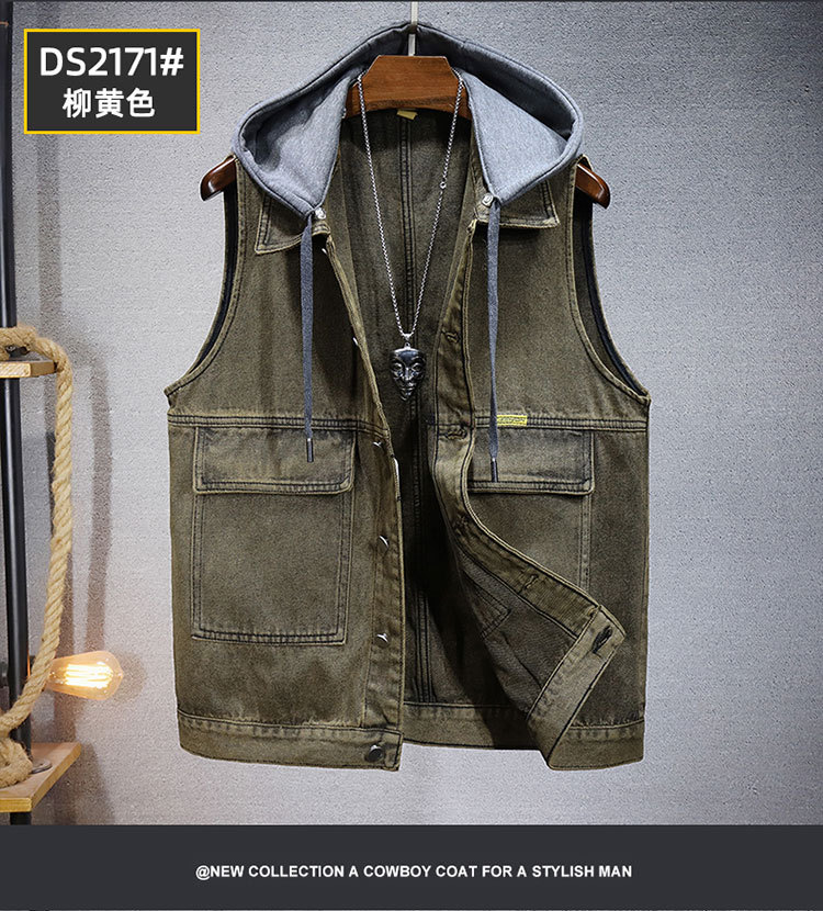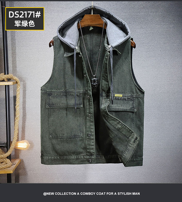 2025 새로운 유행 남성과 여성의 같은 스타일 양복 조끼 조끼 사계절 느슨한 패션 분리형 후드 데님 조끼 남성용스토어 가기