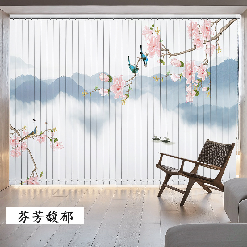 거실 수직 커튼 사무실 커튼 정전 차양 침실 연구 레스토랑 전기 스마트 수동 푸시-풀 인쇄