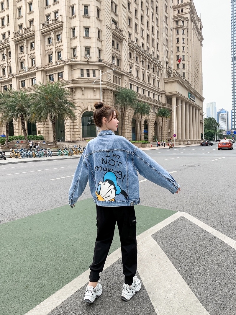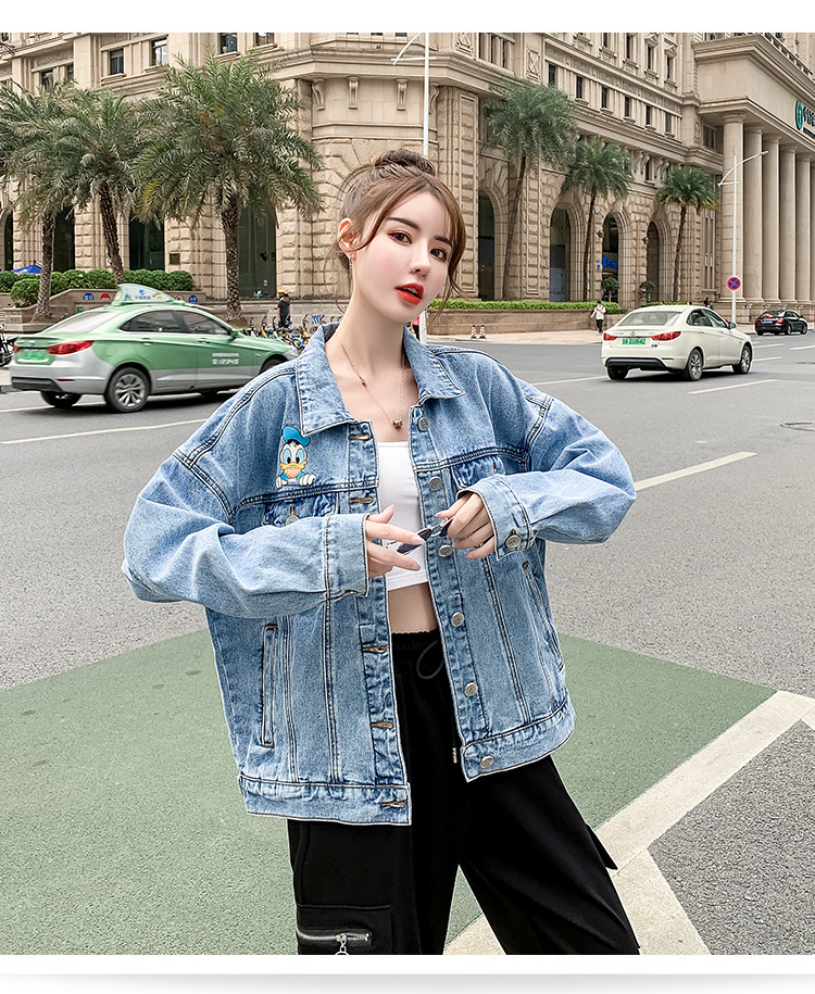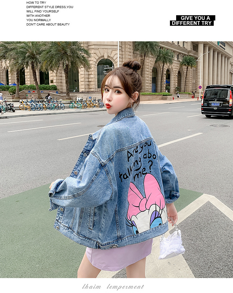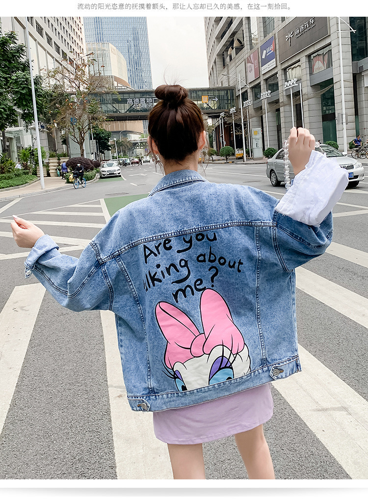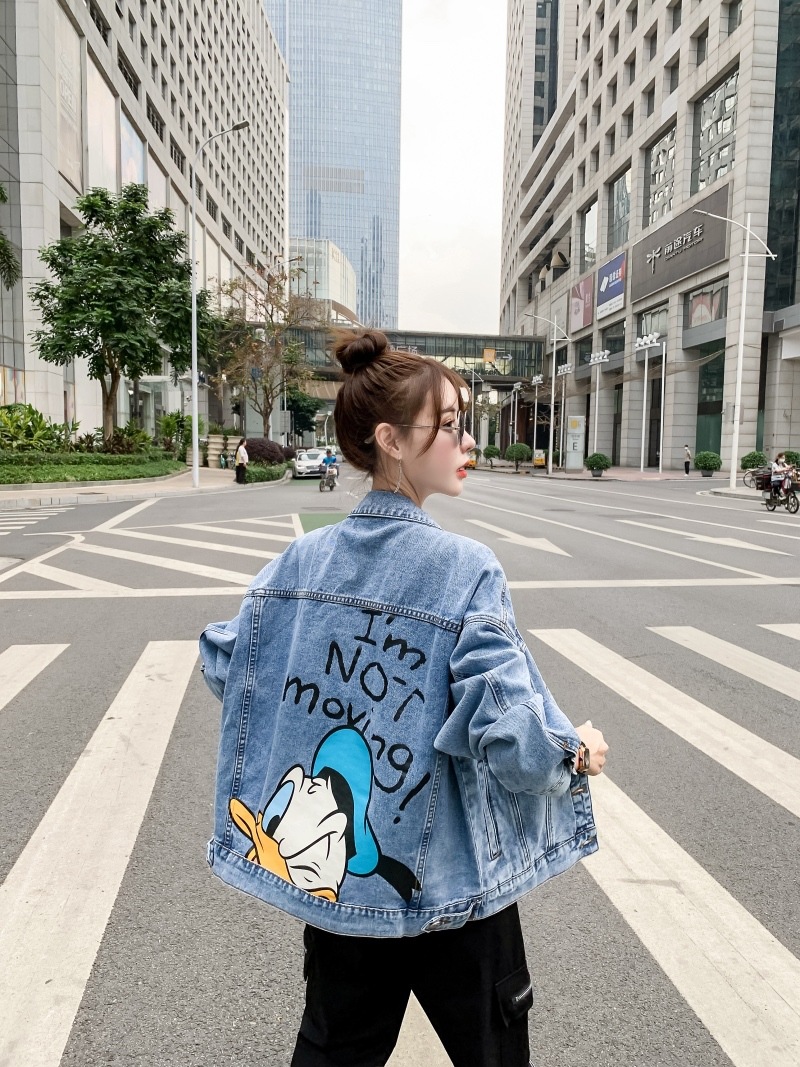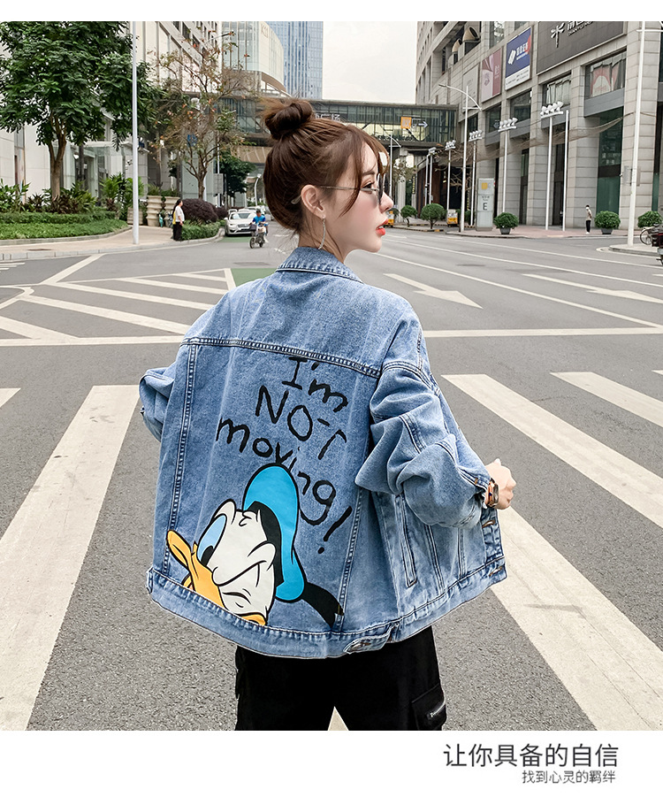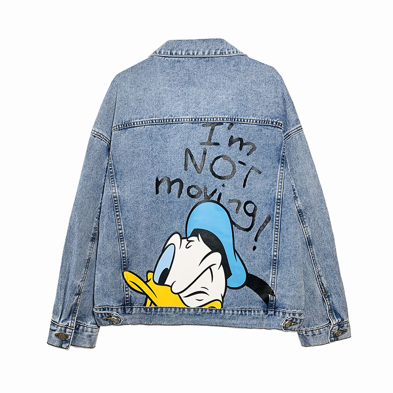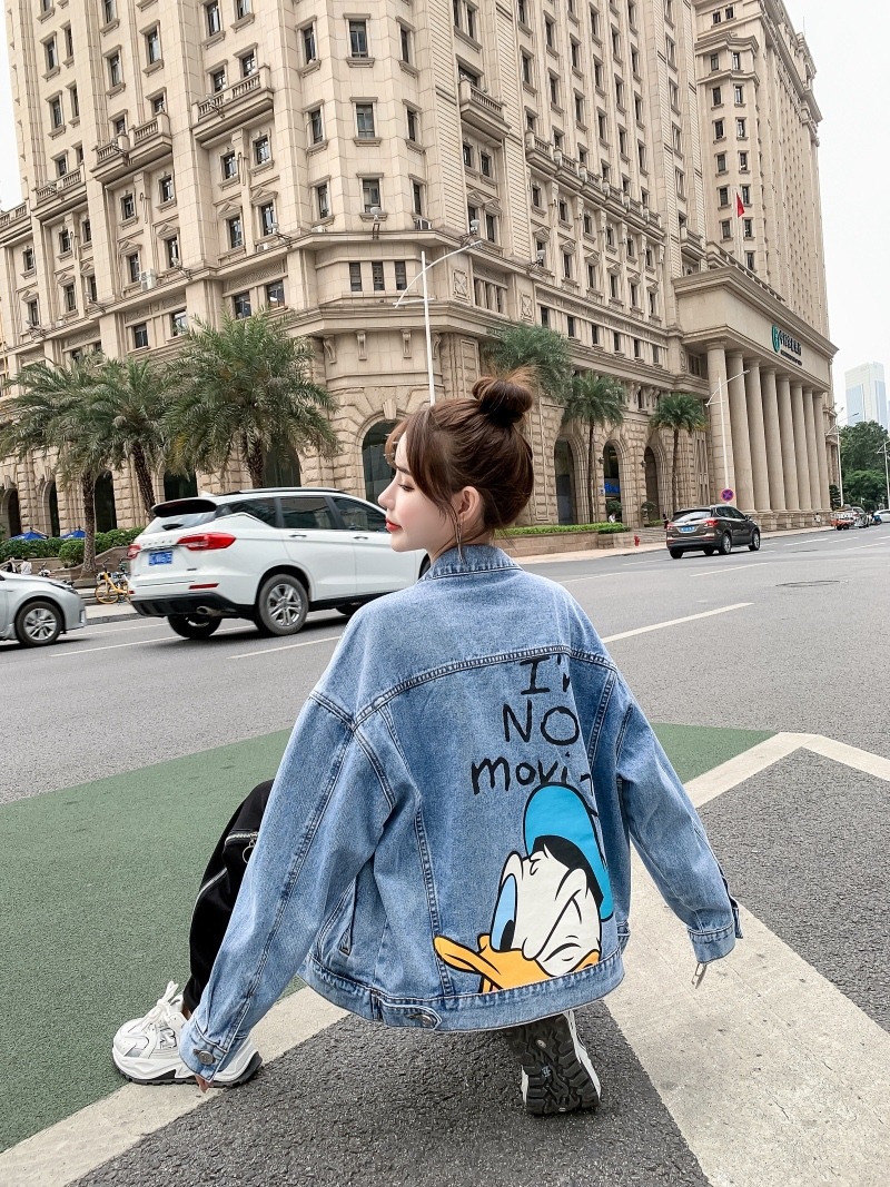 2023 봄과 가을 새로운 유럽 데님 코트 여자의 느슨한 만화 도널드 덕 인쇄 캐주얼 재킷 크로스 보더 트렌디 브랜드스토어 가기