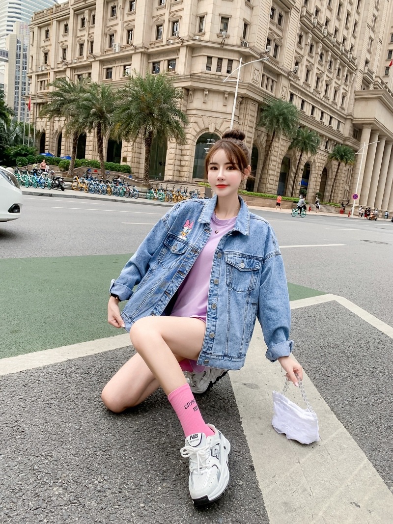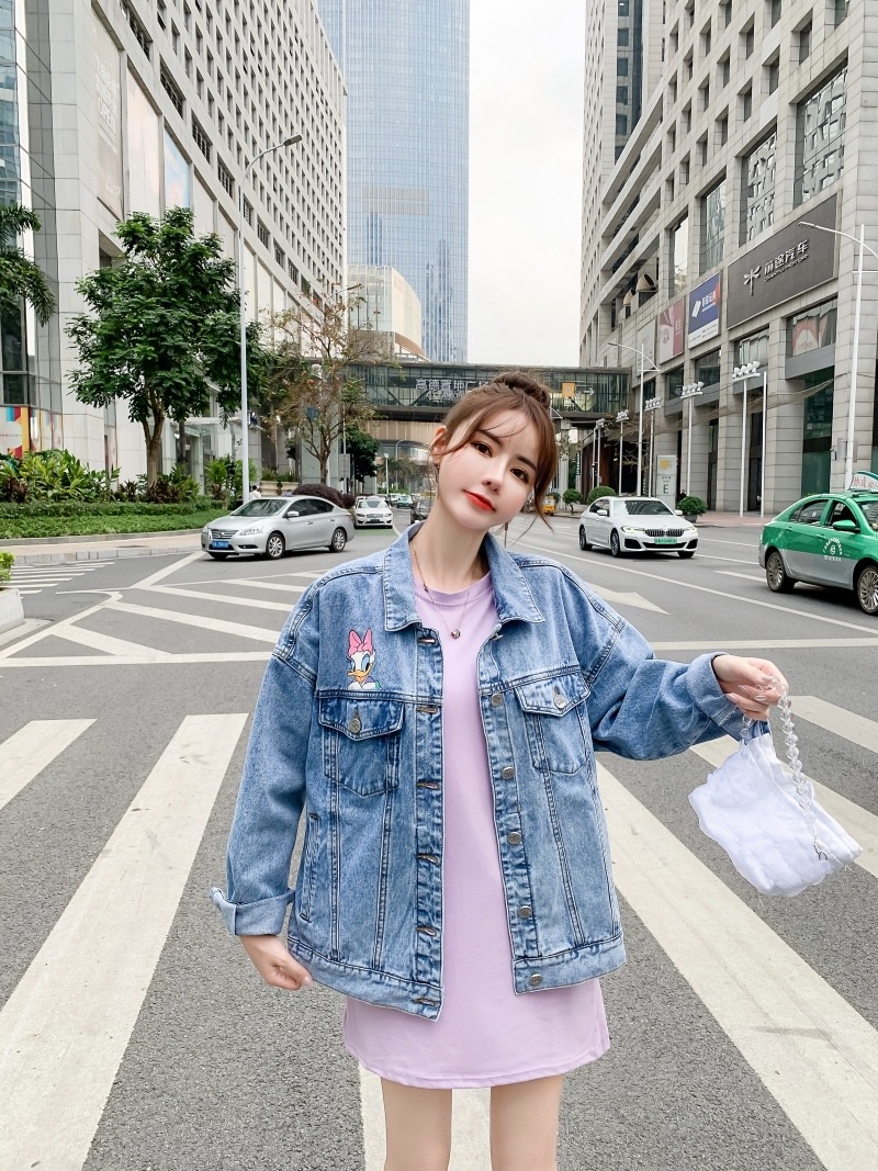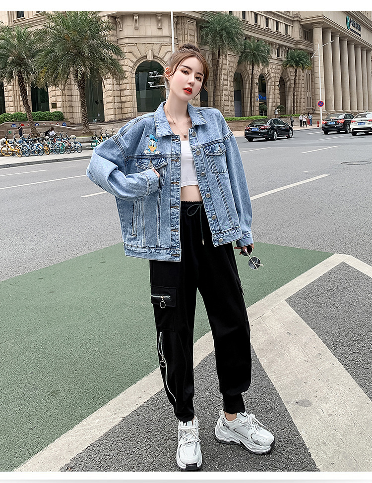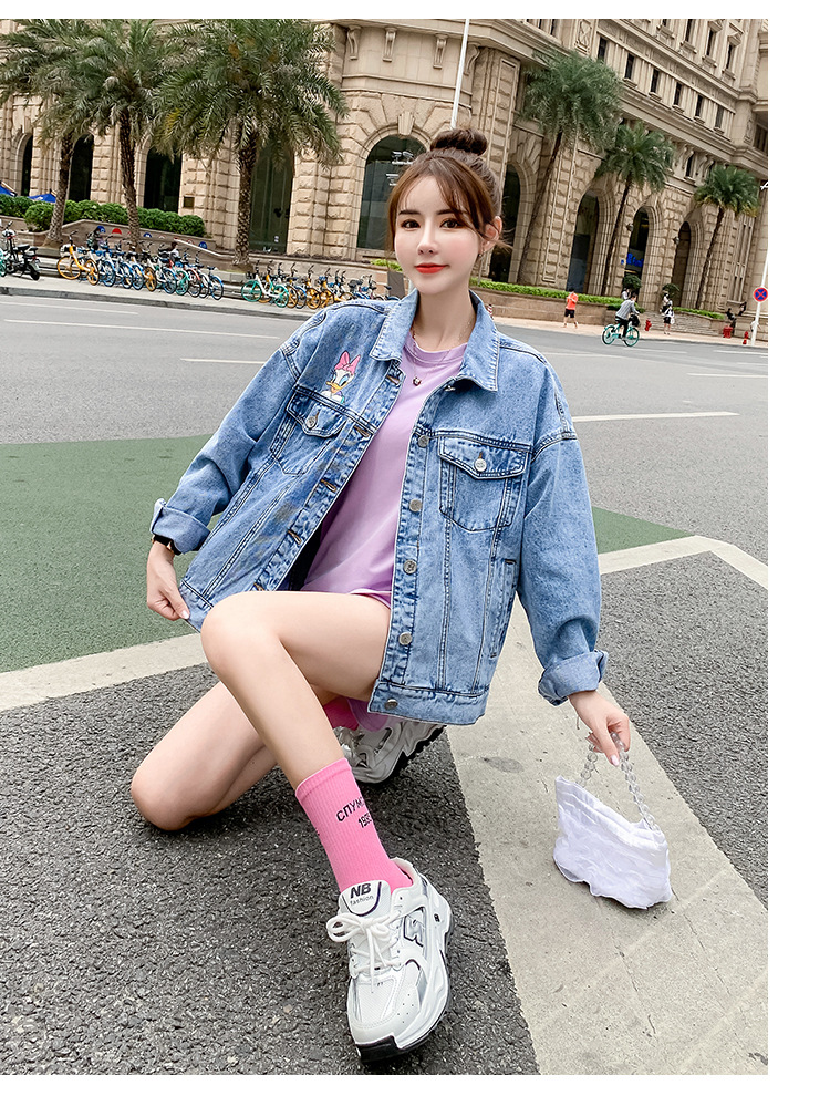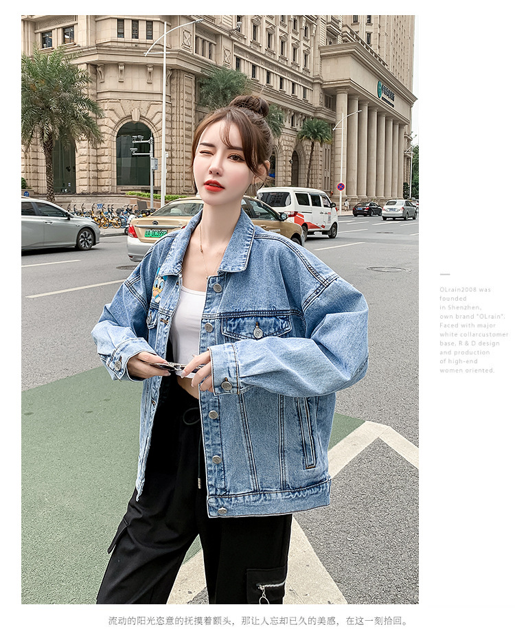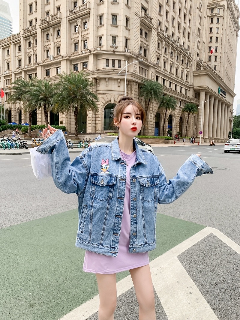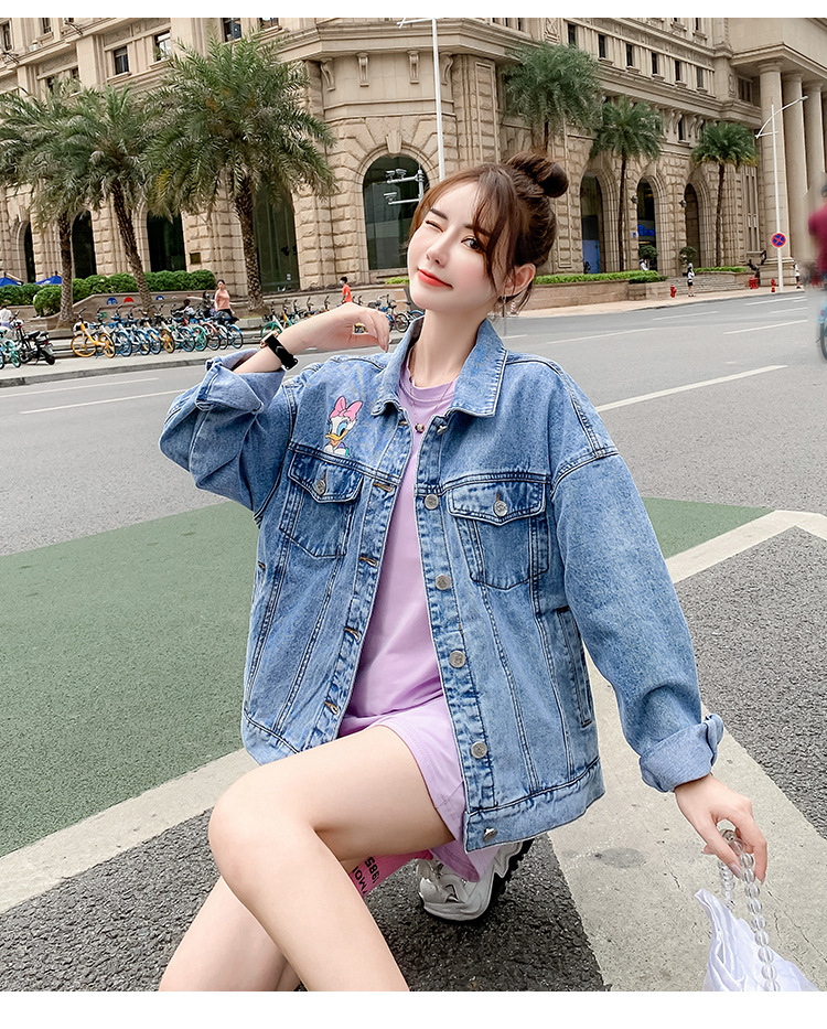2023 봄과 가을 새로운 유럽 데님 코트 여자의 느슨한 만화 도널드 덕 인쇄 캐주얼 재킷 크로스 보더 트렌디 브랜드스토어 가기