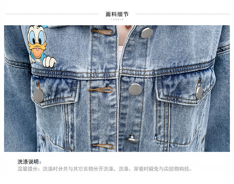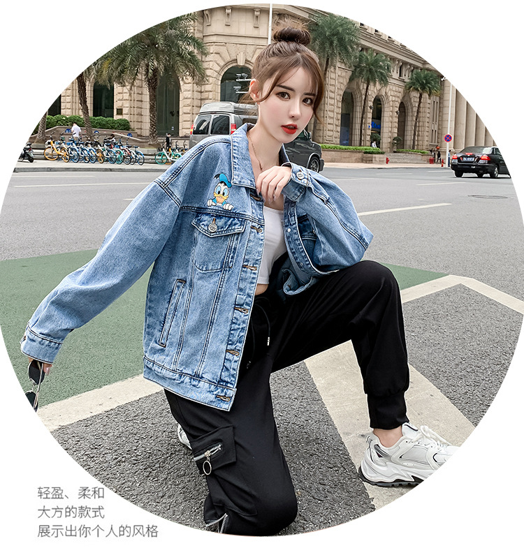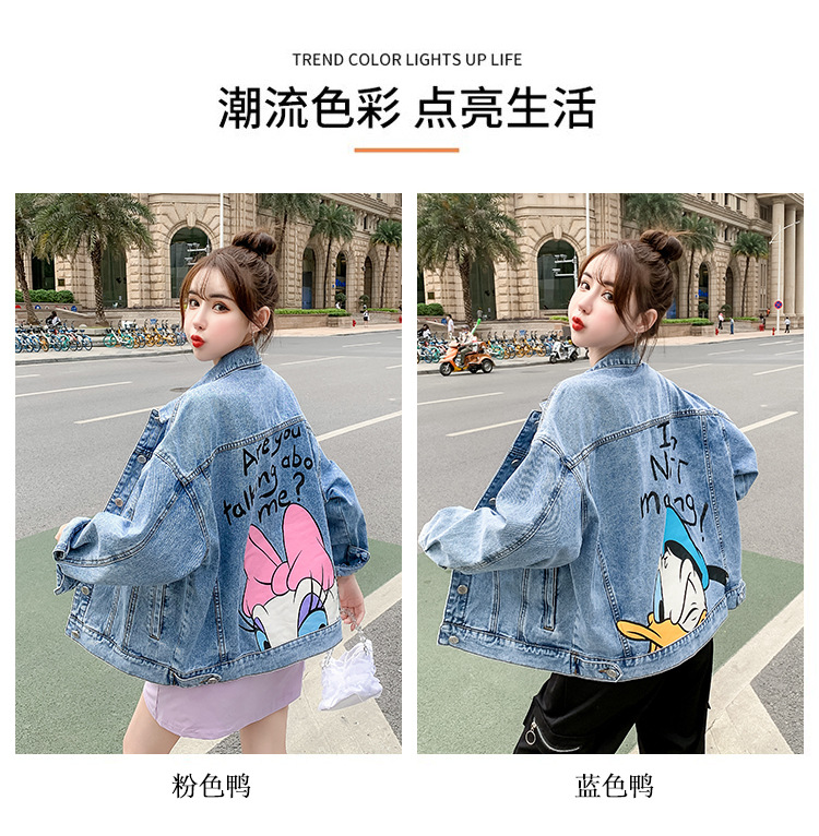 2023 봄과 가을 새로운 유럽 데님 코트 여자의 느슨한 만화 도널드 덕 인쇄 캐주얼 재킷 크로스 보더 트렌디 브랜드