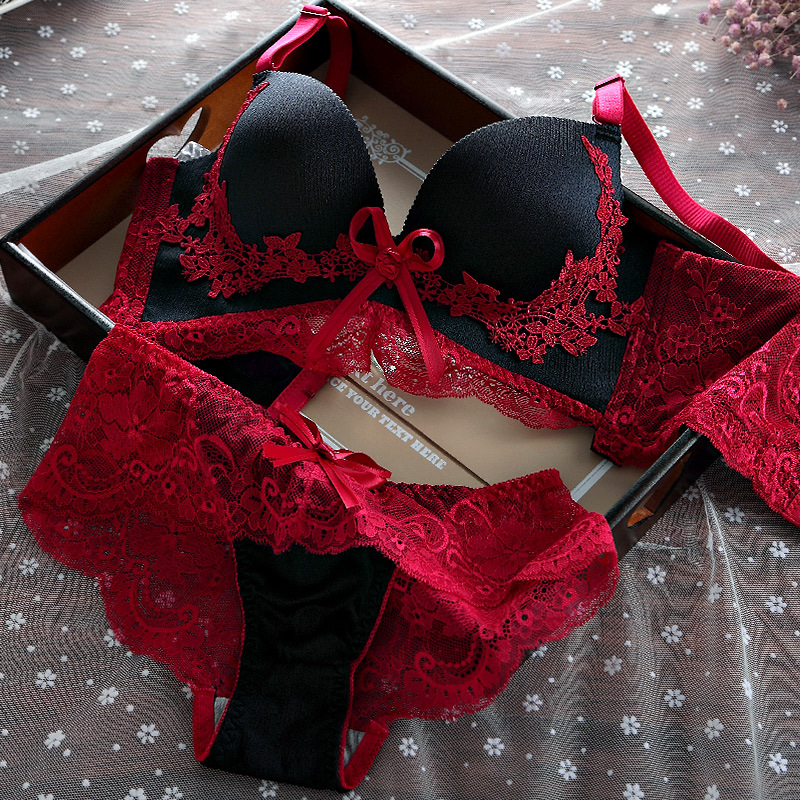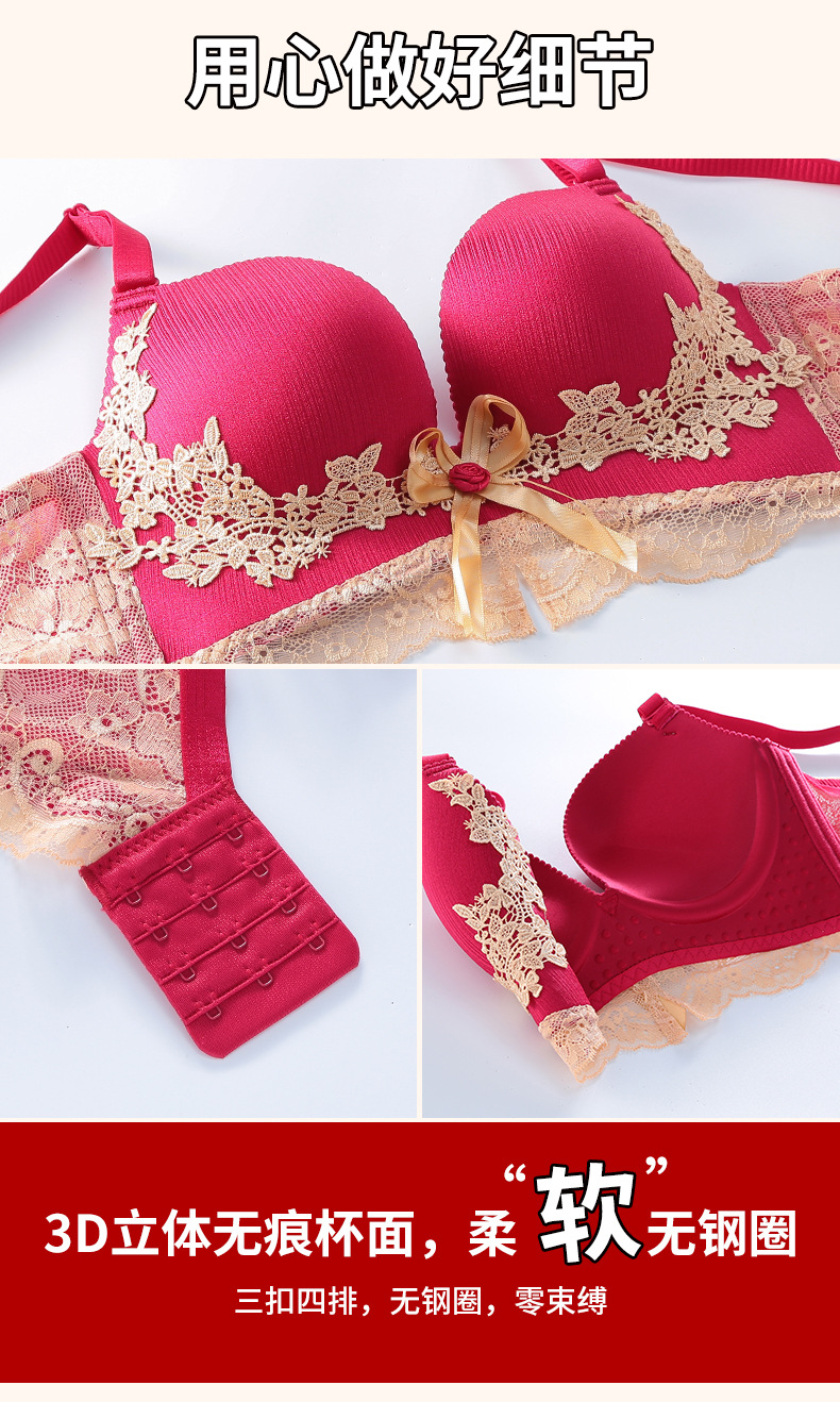 하이 엔드 브래지어 세트 섹시한 작은 가슴 푸시 업 아니 스틸 링 웨딩 신부 브래지어 여성을위한 빨간 속옷