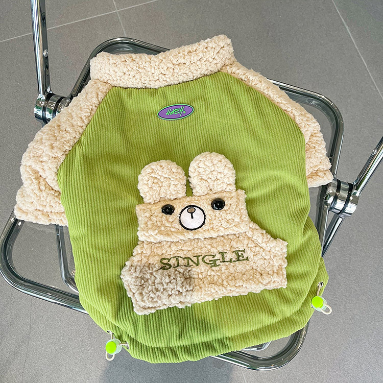 • 노란색과 녹색 곰 코듀로이 코튼 패딩 재킷