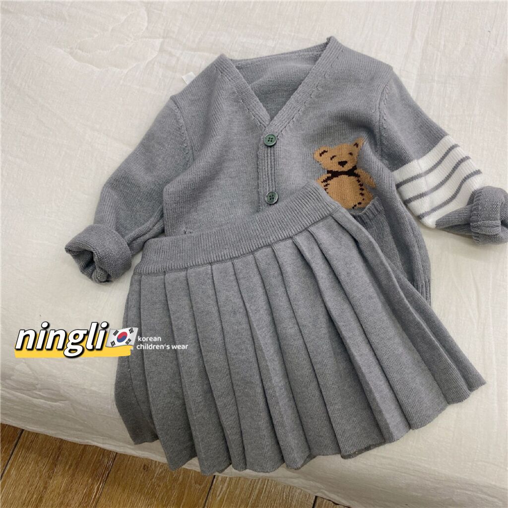 소녀의 가을과 겨울 세트 2024 새로운 어린이 대학 스타일 스웨터 카디건 원피스 서양식 아기 소녀의 투피스 세트