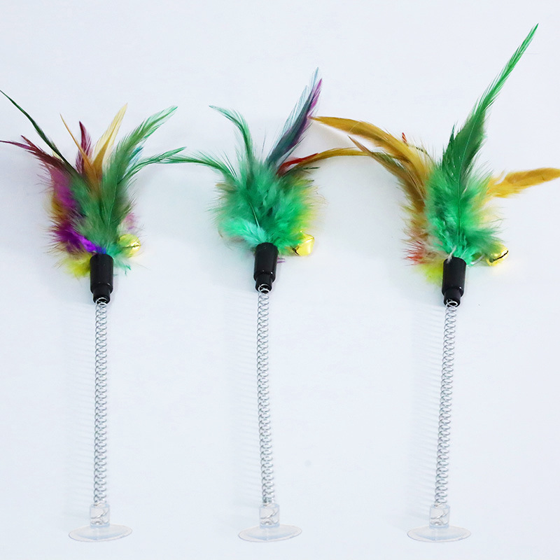 다채로운 고양이 스틱 봄 새로운 재고 도매 흡입 컵 고양이 안녕 장난감 긴 깃털 고양이 장난감에서 지루함을 완화하기 위해스토어 가기