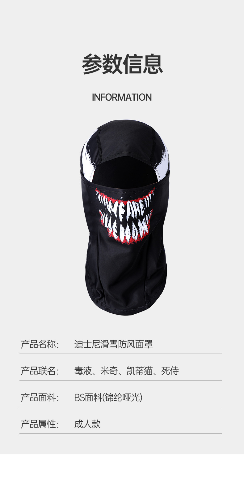 디즈니 포이즌 스키 헤드 기어 마스크 얼굴 보호 스카프 방풍 방지 따뜻한 헤드 기어를 타고 등산 남녀스토어 가기