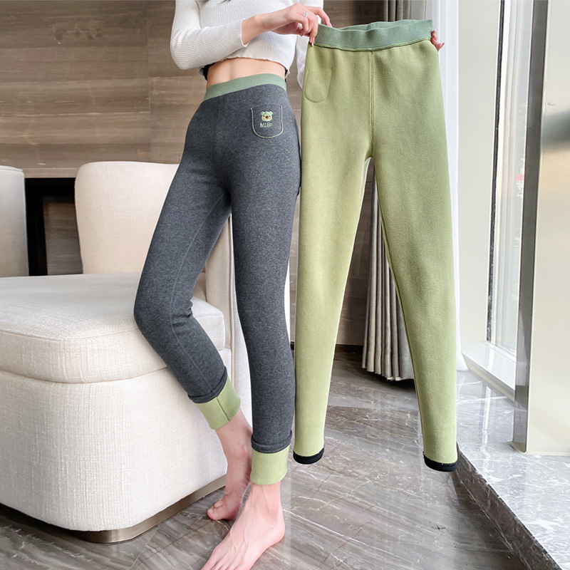 가을 겨울 여성용 곰돌이 보온 레깅스, 기모 안감, 두꺼운 슬림핏 블랙 하이웨이스트 면바지, 한국 스타일 이너웨어 겸 외출복 여성 바지스토어 가기