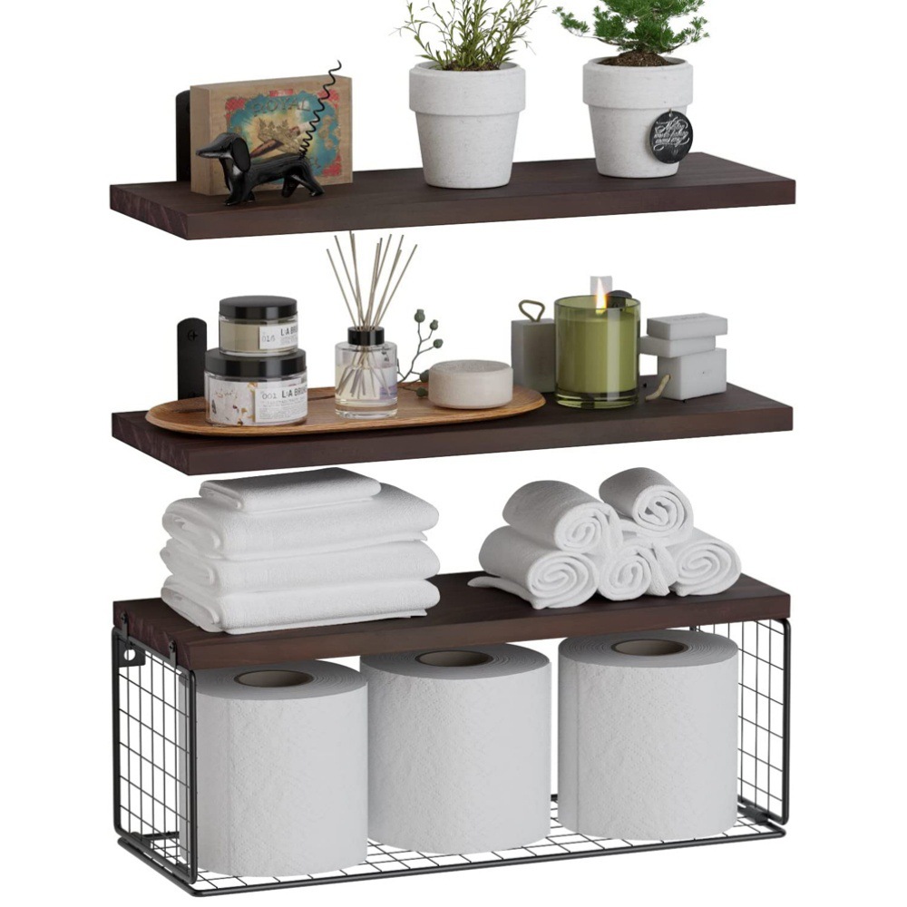 3件套乡村风格的农舍木质浴室卧室墙架墙壁浮动搁板浴室浮动搁板