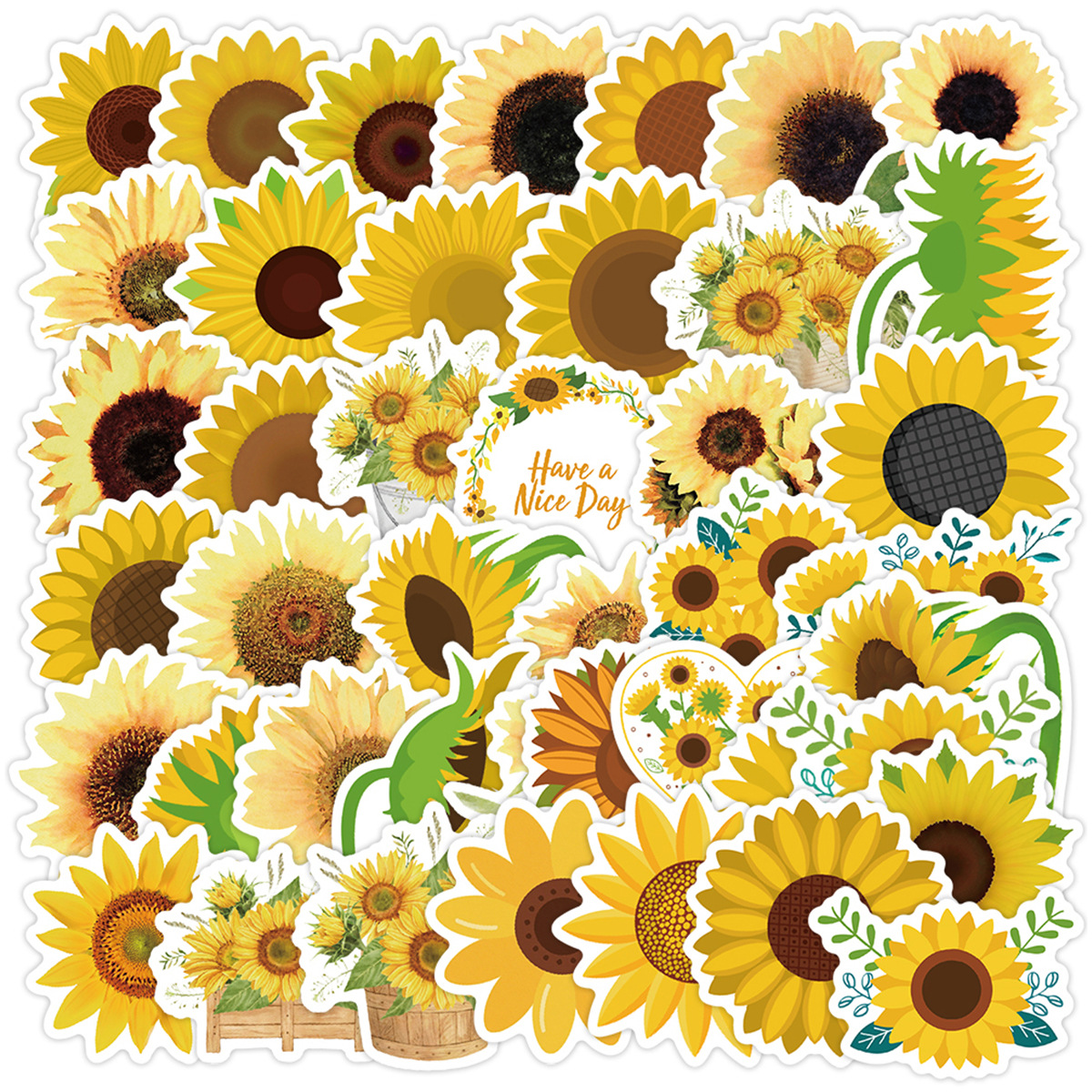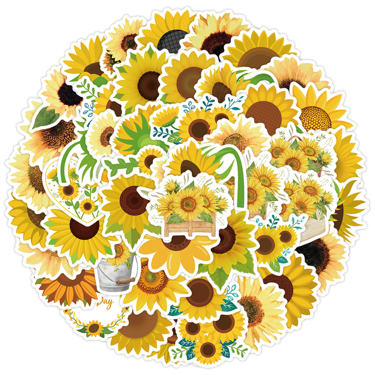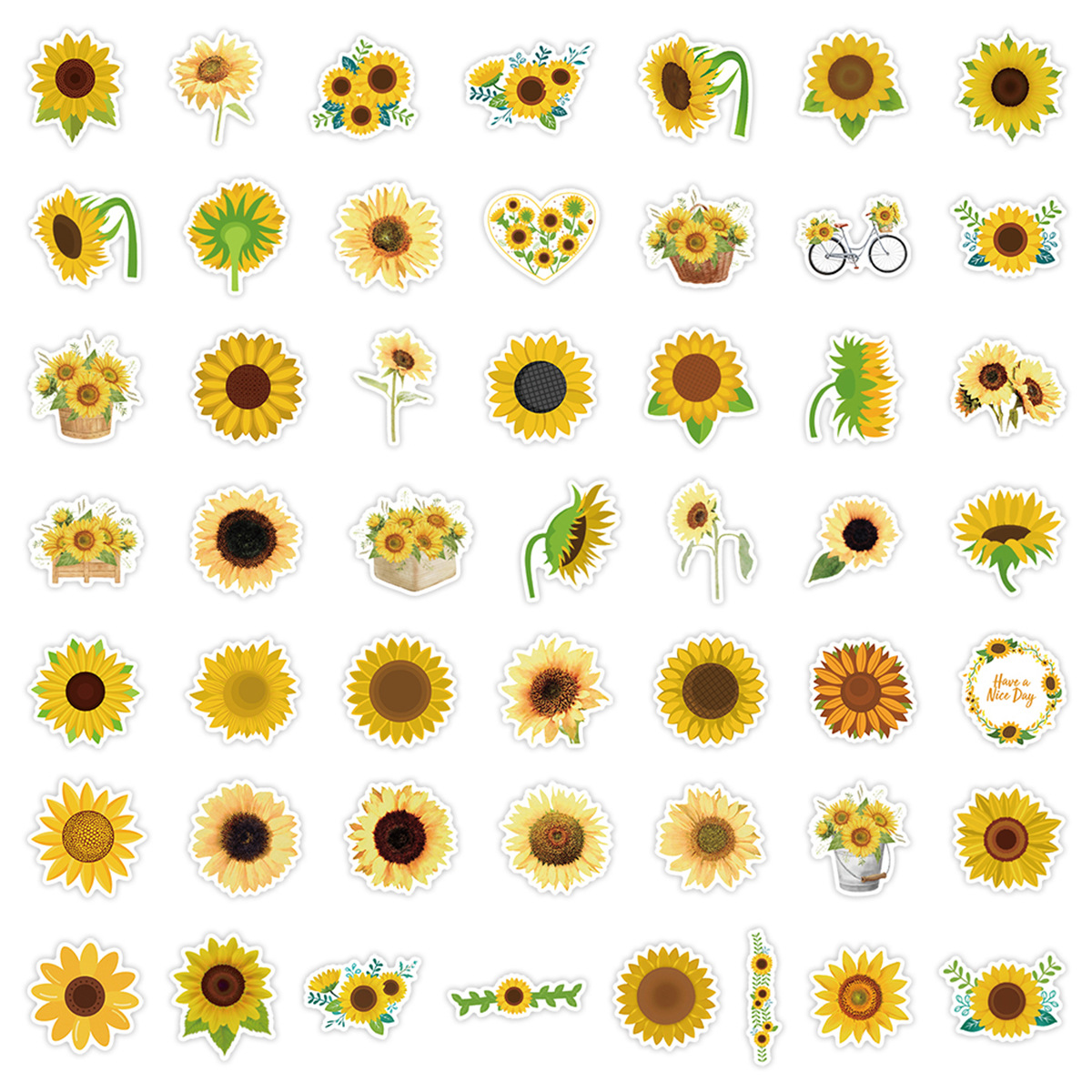 50 해바라기 만화 낙서 스티커 노트북 휴대 전화 물 컵 장식 스티커 방수 손 계정 스티커 배치스토어 가기