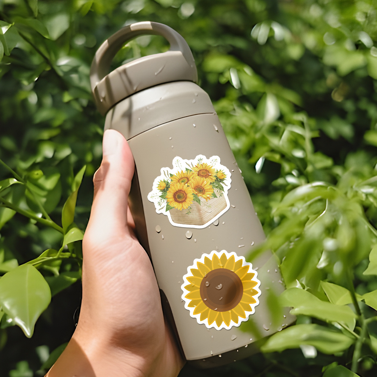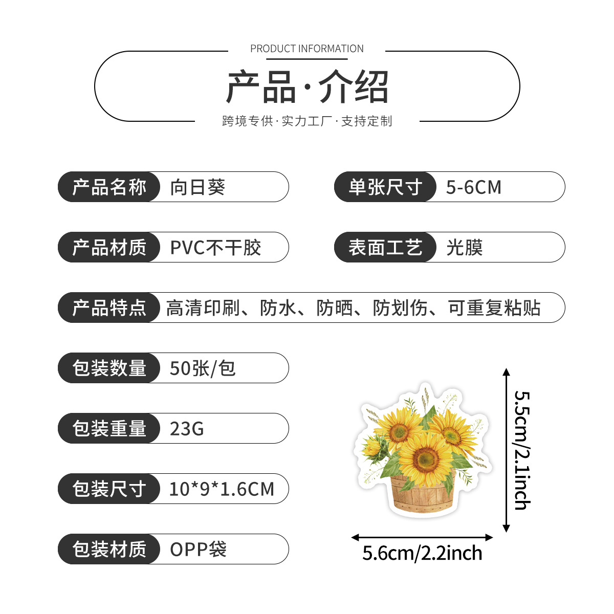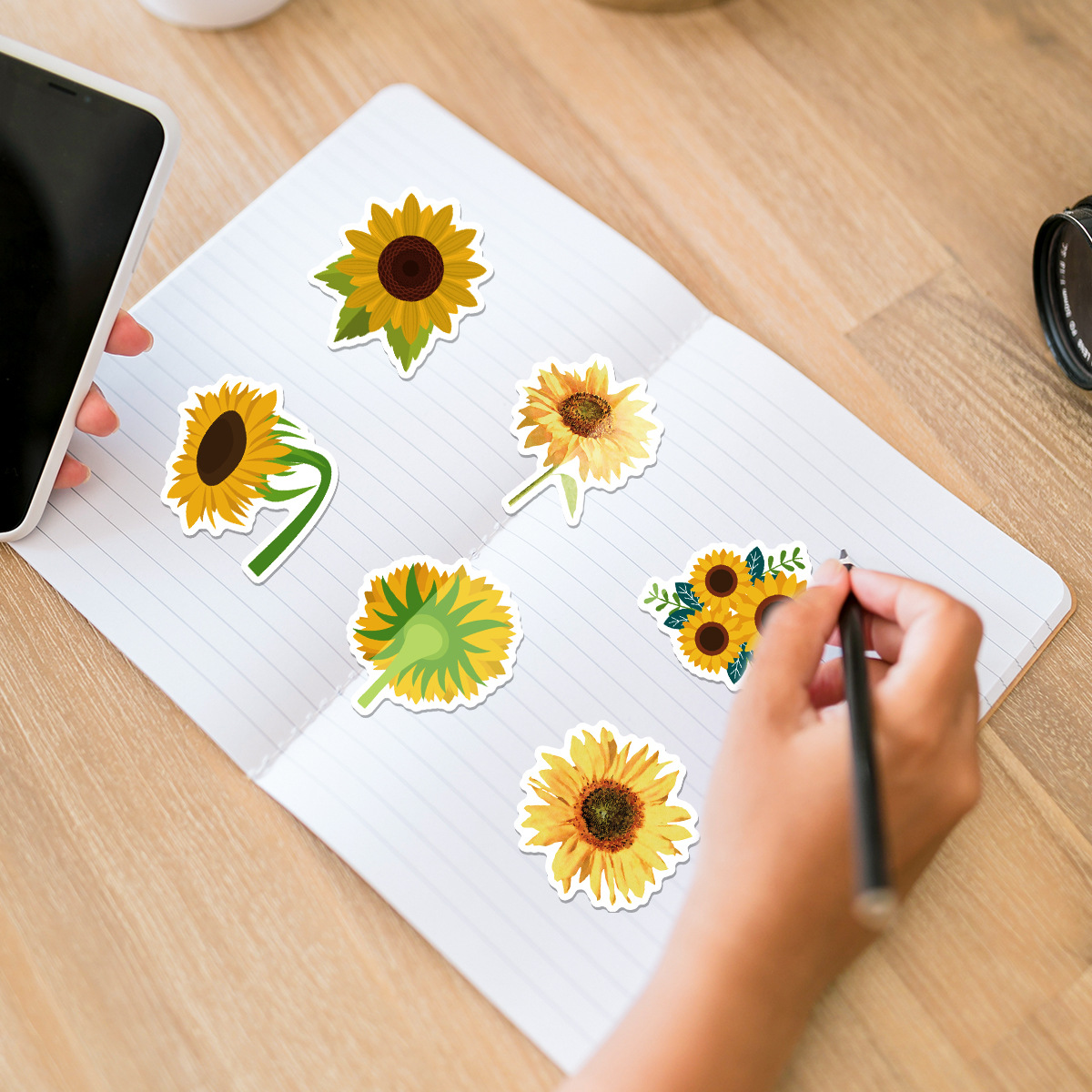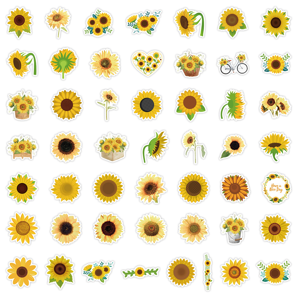 50 해바라기 만화 낙서 스티커 노트북 휴대 전화 물 컵 장식 스티커 방수 손 계정 스티커 배치