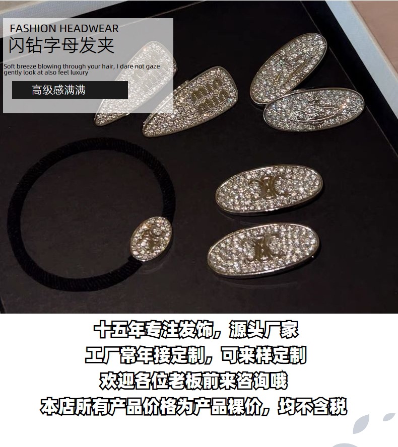 소녀 스타일 편지 라인 석 머리핀 앞머리 부러진 머리 섬세한 작은 측면 클립 고급 감각 금속 한 단어 Duckbill 클립스토어 가기