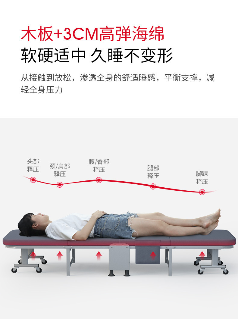점심 시간 접이식 침대 사무실 낮잠 싱글 접이식 침대 가정용 경재 스폰지 기술 천 4 배 접이식 침대