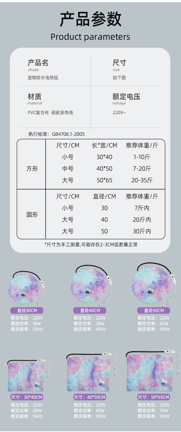 겨울 따뜻한 전기 담요 애완동물 일정한 온도 난방 패드 고양이 개 방수 물림 방지 난방 소형 전기 매트리스 도매