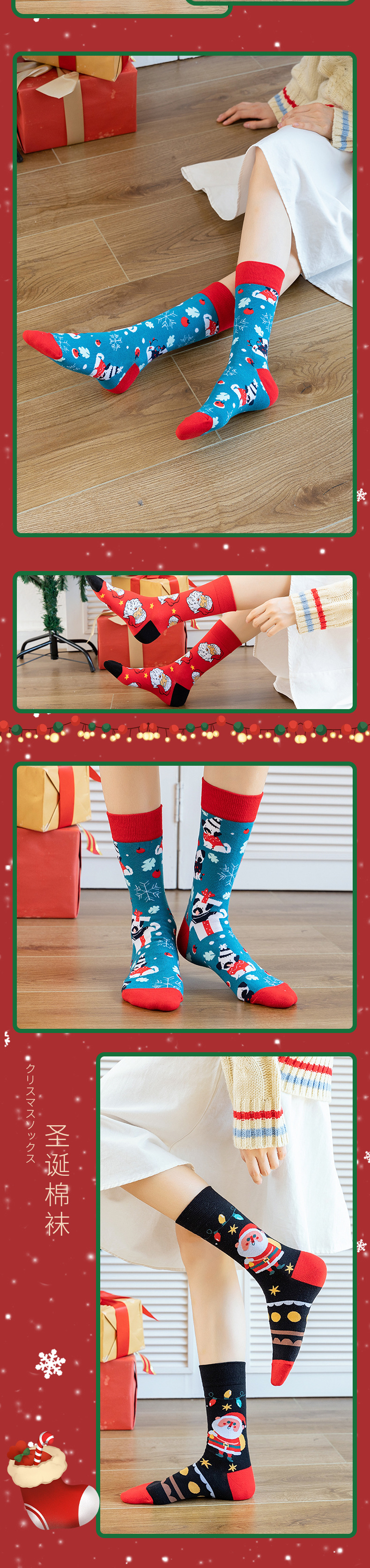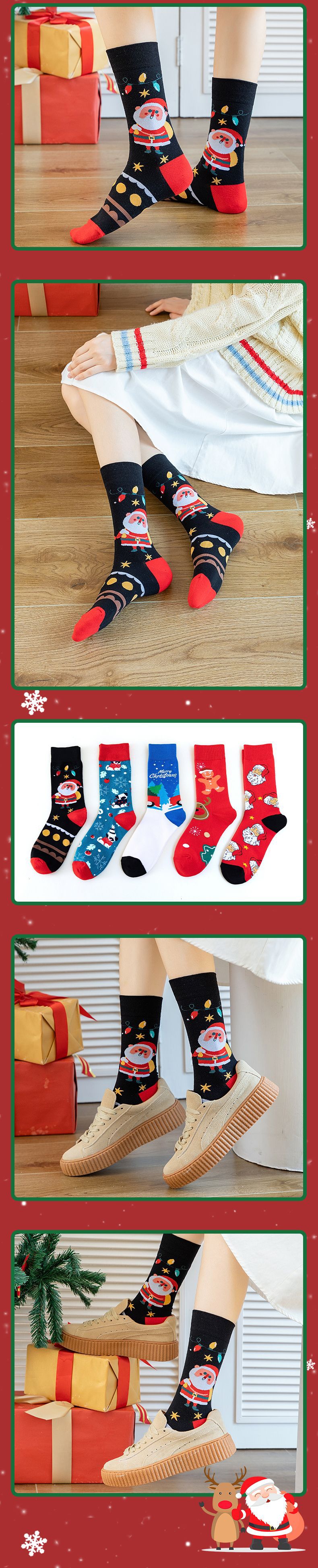 크로스 보더 크리스마스 양말 튜브 양말 가을과 겨울 창조적 인 만화 디자인면 양말 유럽과 미국의 트렌드 크리스마스 선물스토어 가기