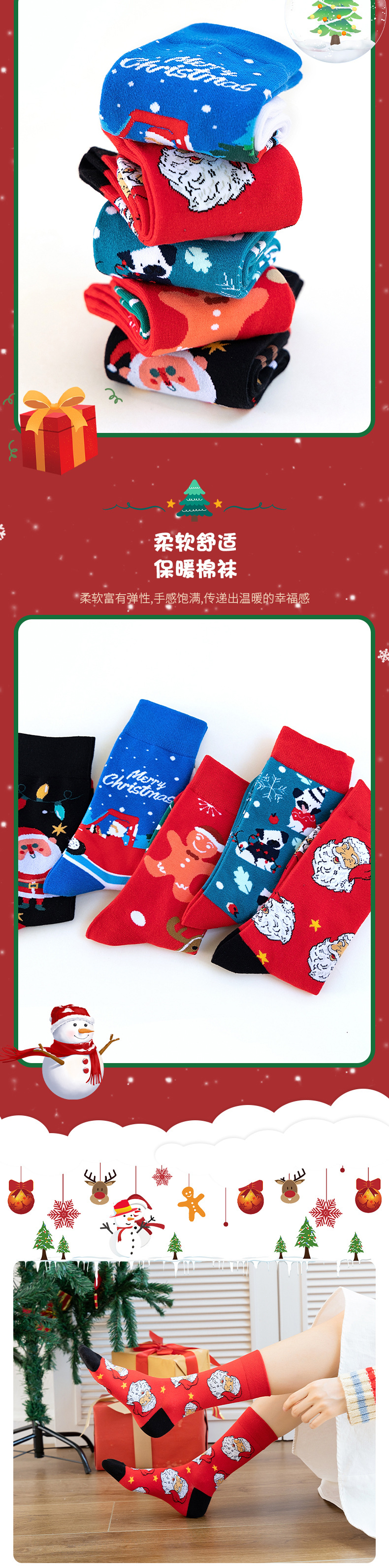 크로스 보더 크리스마스 양말 튜브 양말 가을과 겨울 창조적 인 만화 디자인면 양말 유럽과 미국의 트렌드 크리스마스 선물