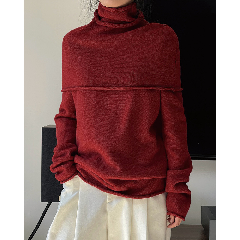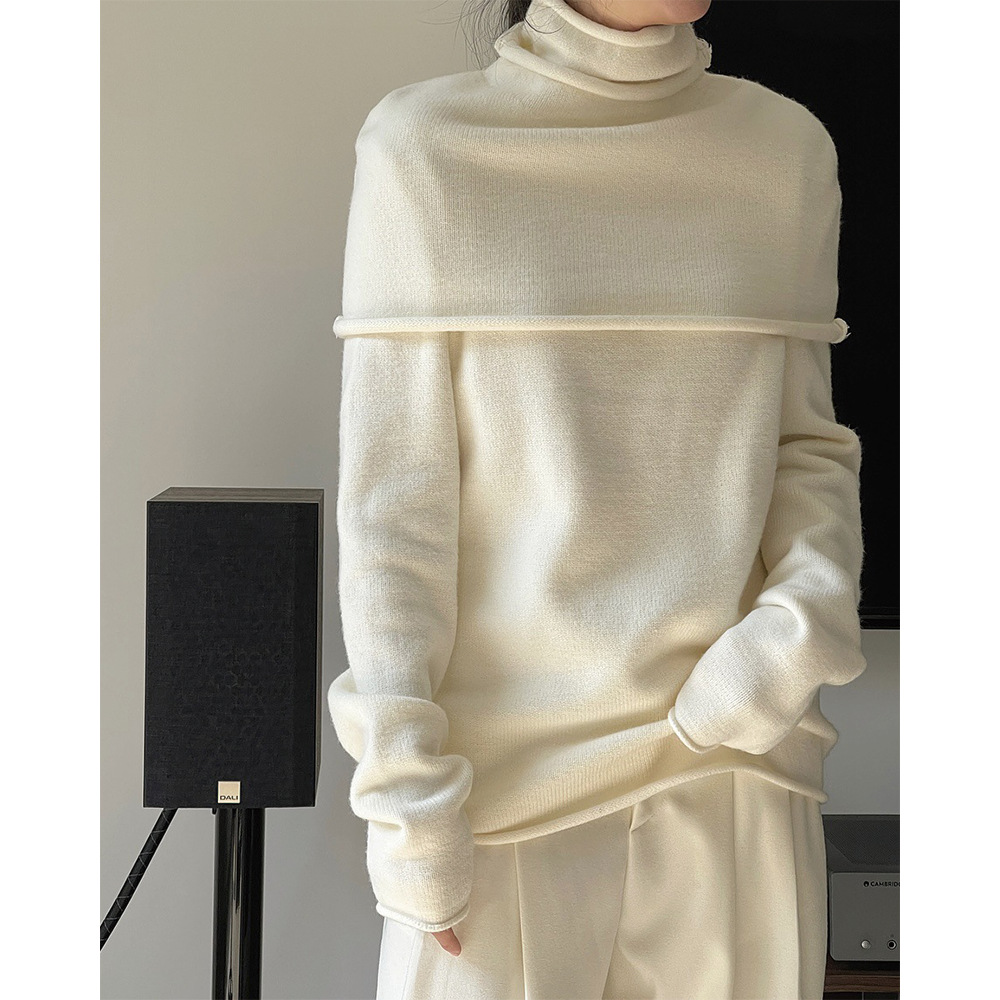 겨울 새로운 한국 동대문 젠틀 스카프 + 스웨터 투피스 세트 여성용 하이넥 베이스 느슨한 웜 탑