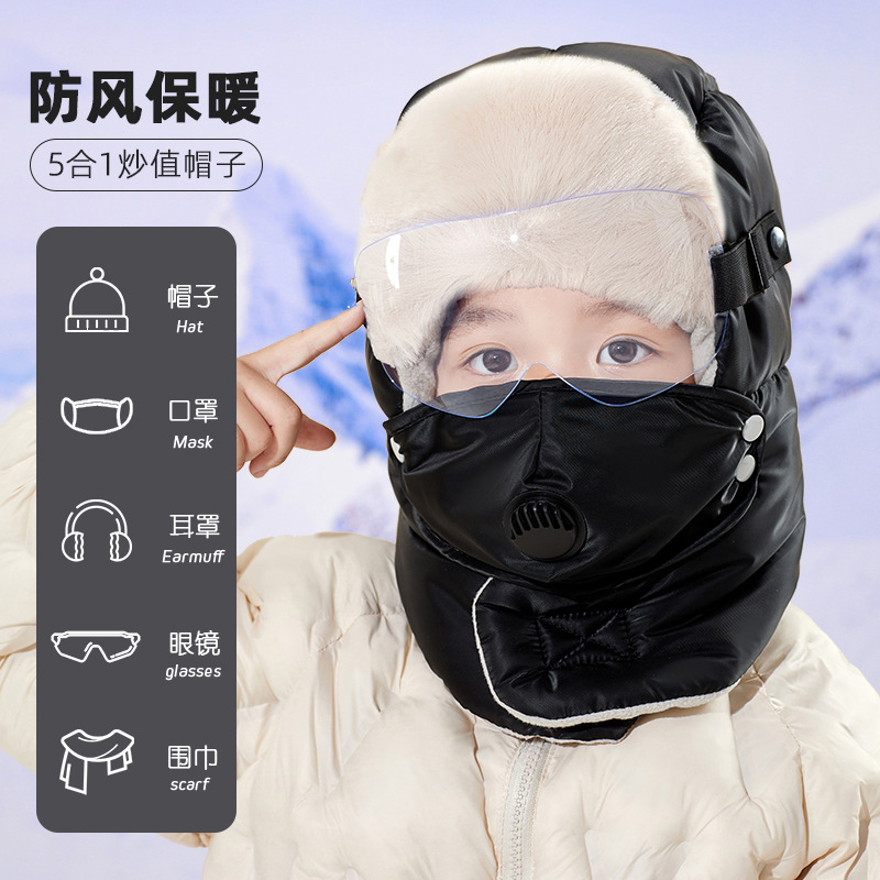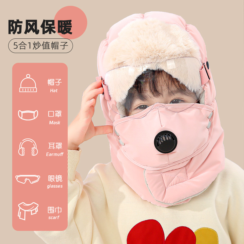 부모-자식 Lei Feng 모자 겨울 승마 귀 보호 따뜻한 유물 겨울 야외 남성과 여성의 방풍 두꺼운 벨벳 냉면 모자