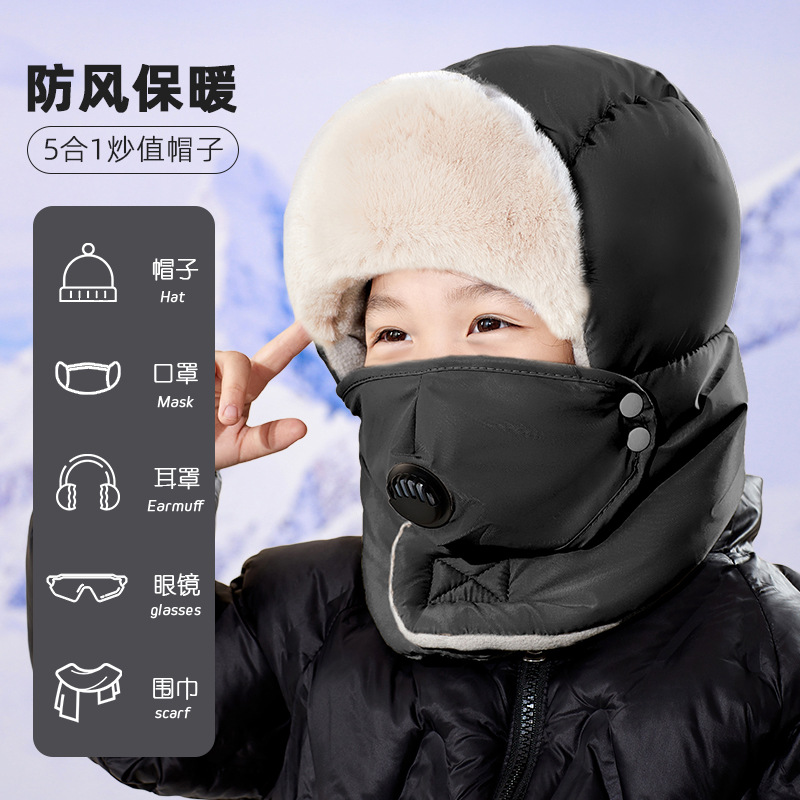 부모-자식 Lei Feng 모자 겨울 승마 귀 보호 따뜻한 유물 겨울 야외 남성과 여성의 방풍 두꺼운 벨벳 냉면 모자스토어 가기