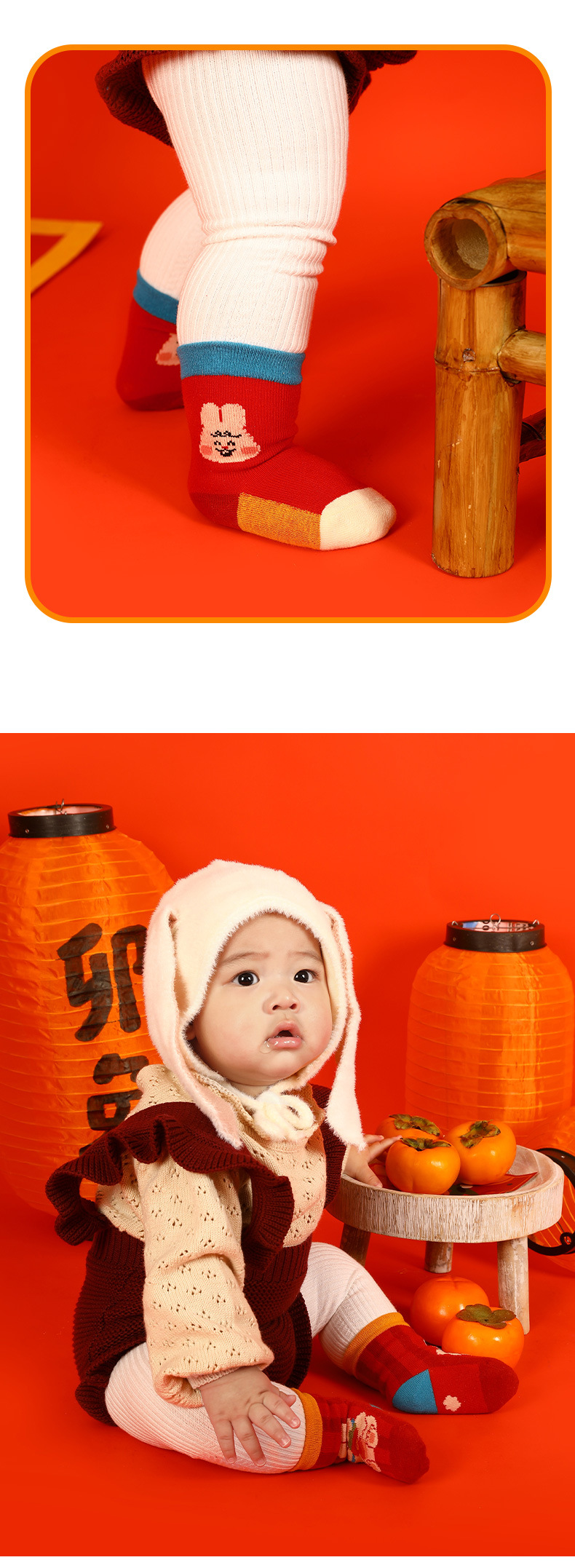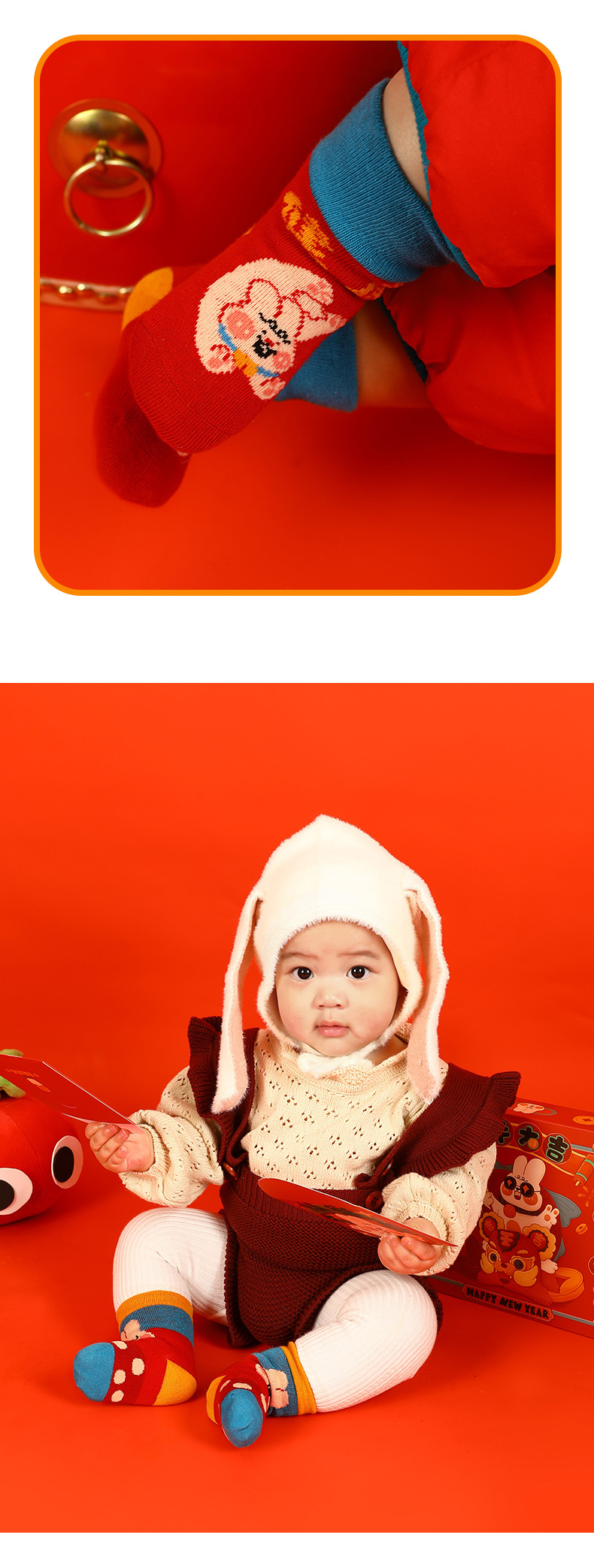 토끼 년 신생아 출생 년 아기 양말 뼈없는 빨간 양말 귀여운 만화 느슨한 면 양말 남성과 여성 양말스토어 가기