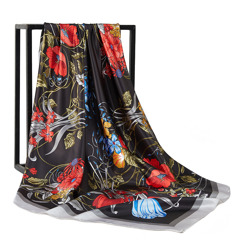 모란 꽃 새틴 인쇄 큰 사각형 인도네시아 숙녀 Baotou 패션 스카프 도매