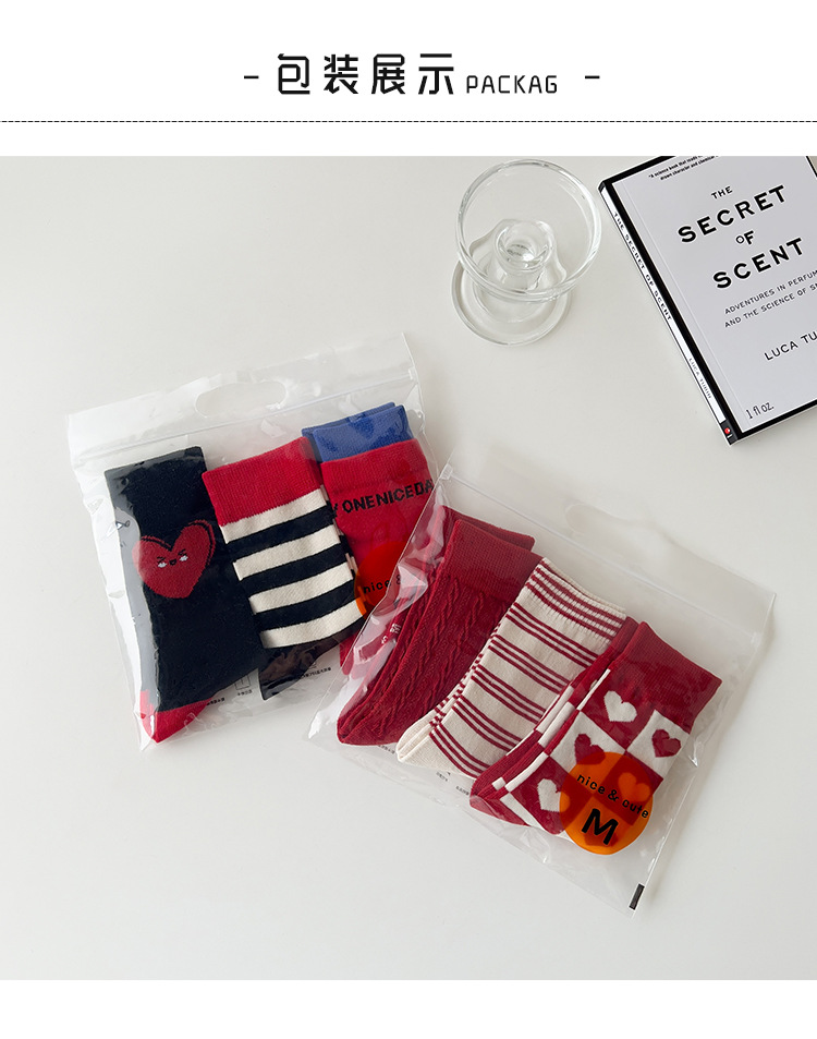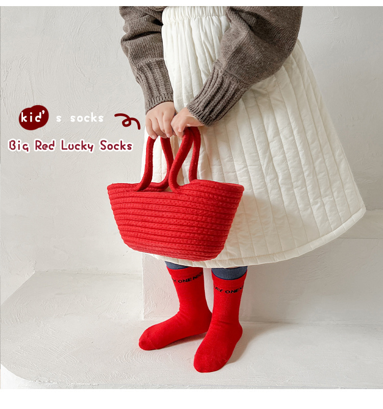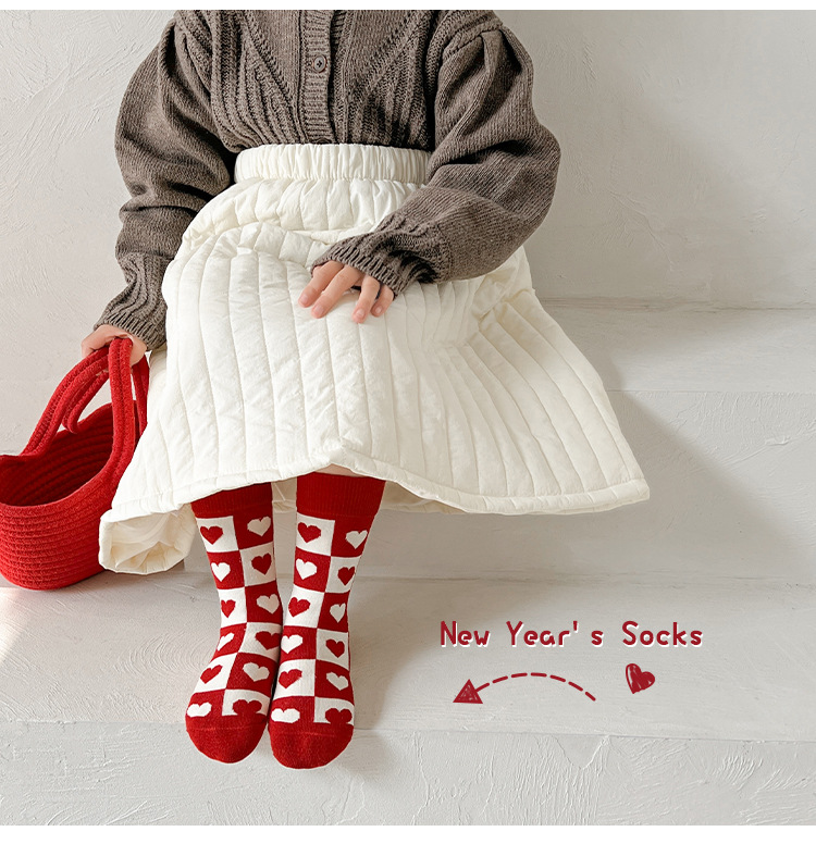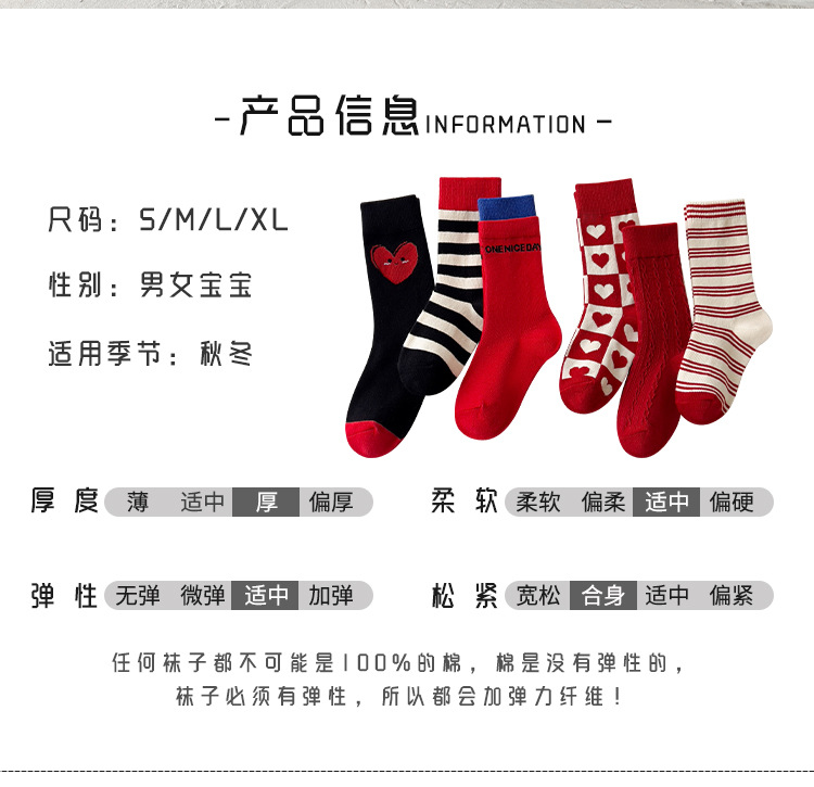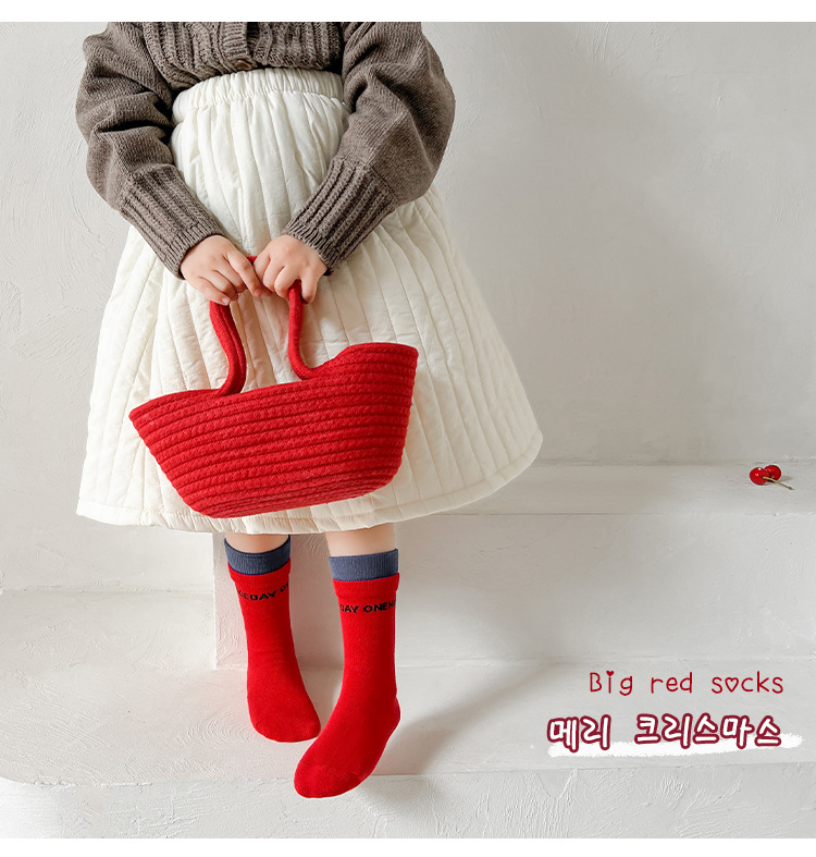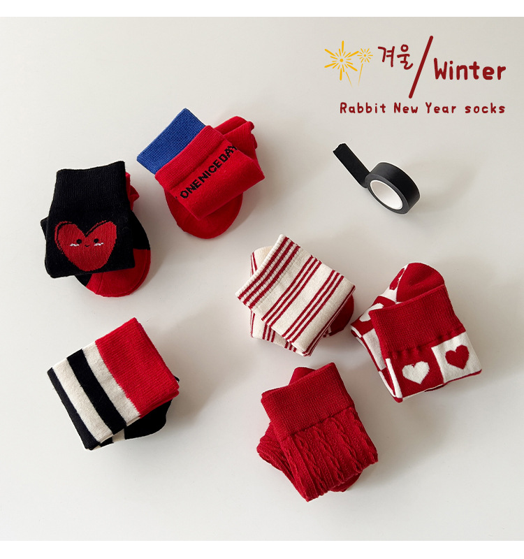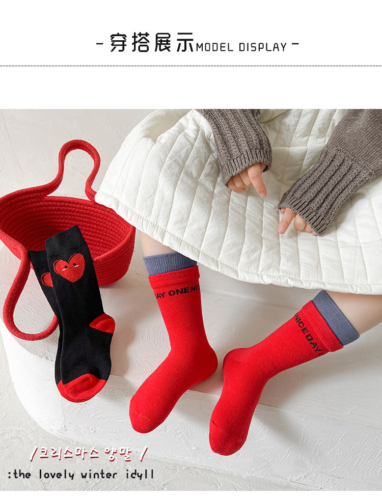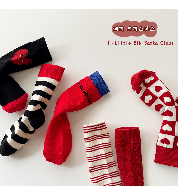 새해 어린이 양말 가을과 겨울 사랑 소년과 소녀를위한 스트라이프 레드 중간 길이 양말스토어 가기
