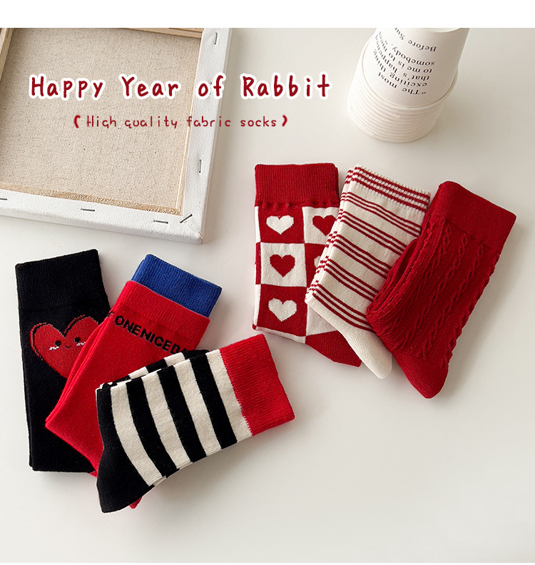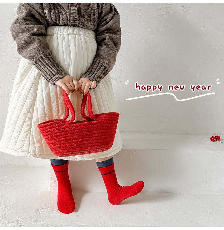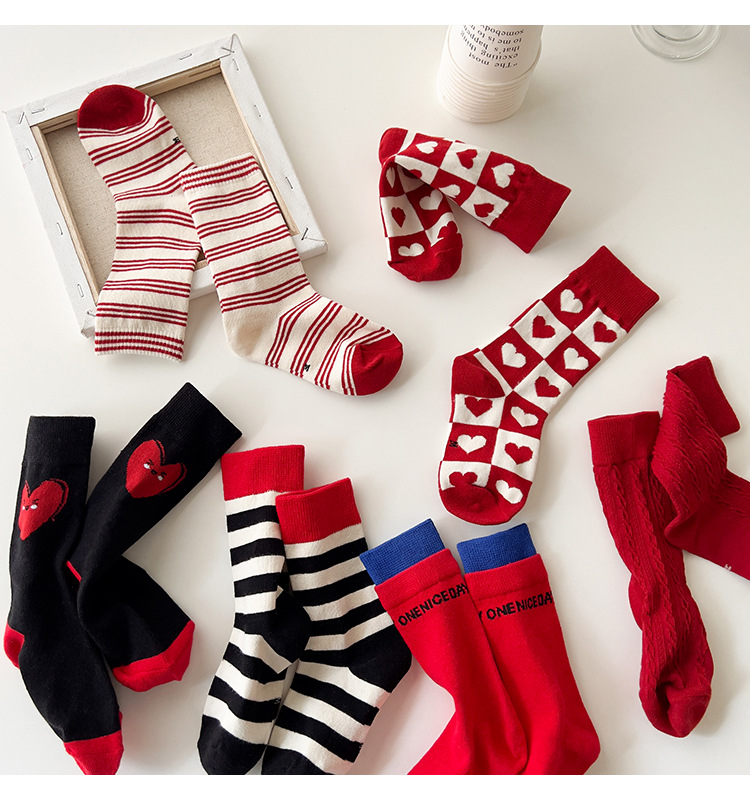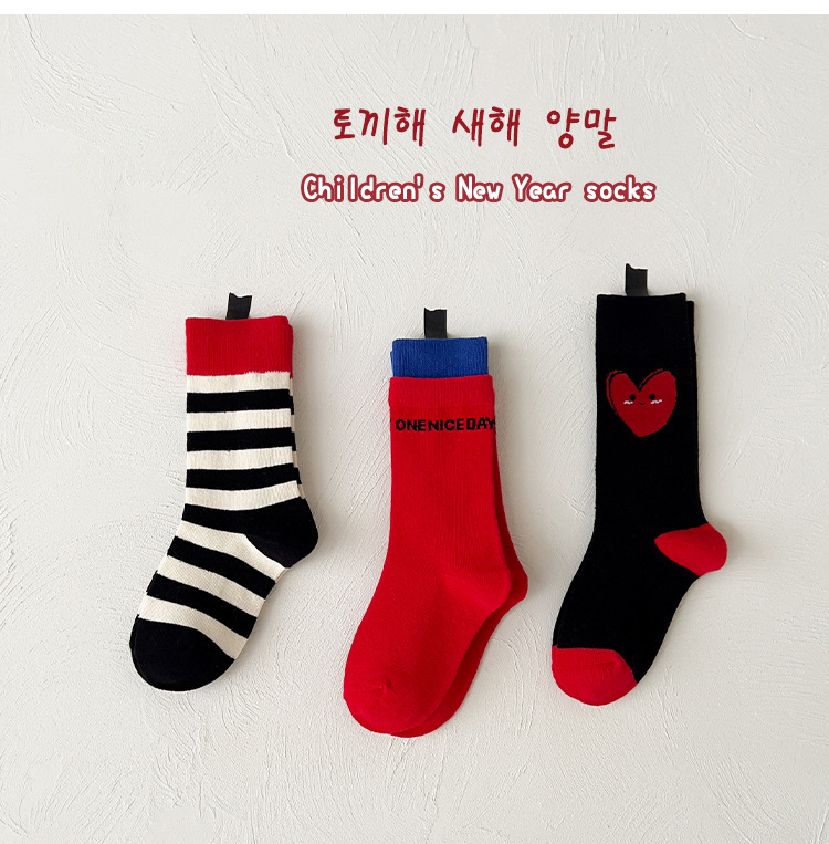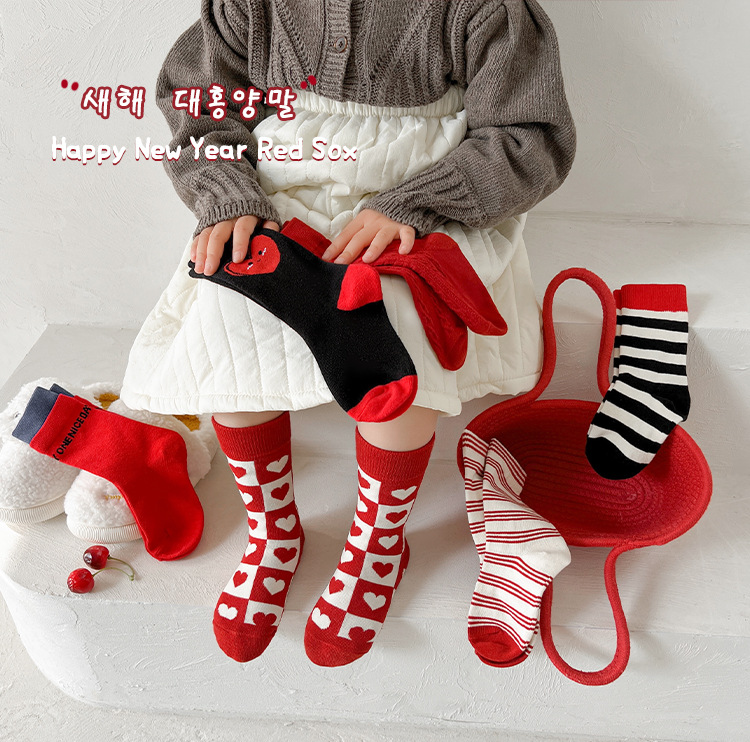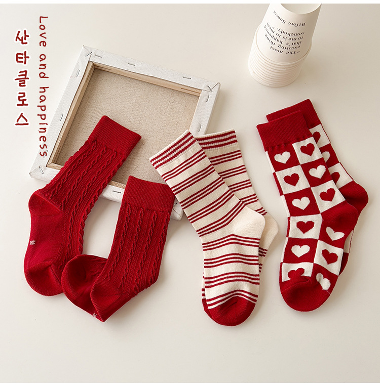 새해 어린이 양말 가을과 겨울 사랑 소년과 소녀를위한 스트라이프 레드 중간 길이 양말