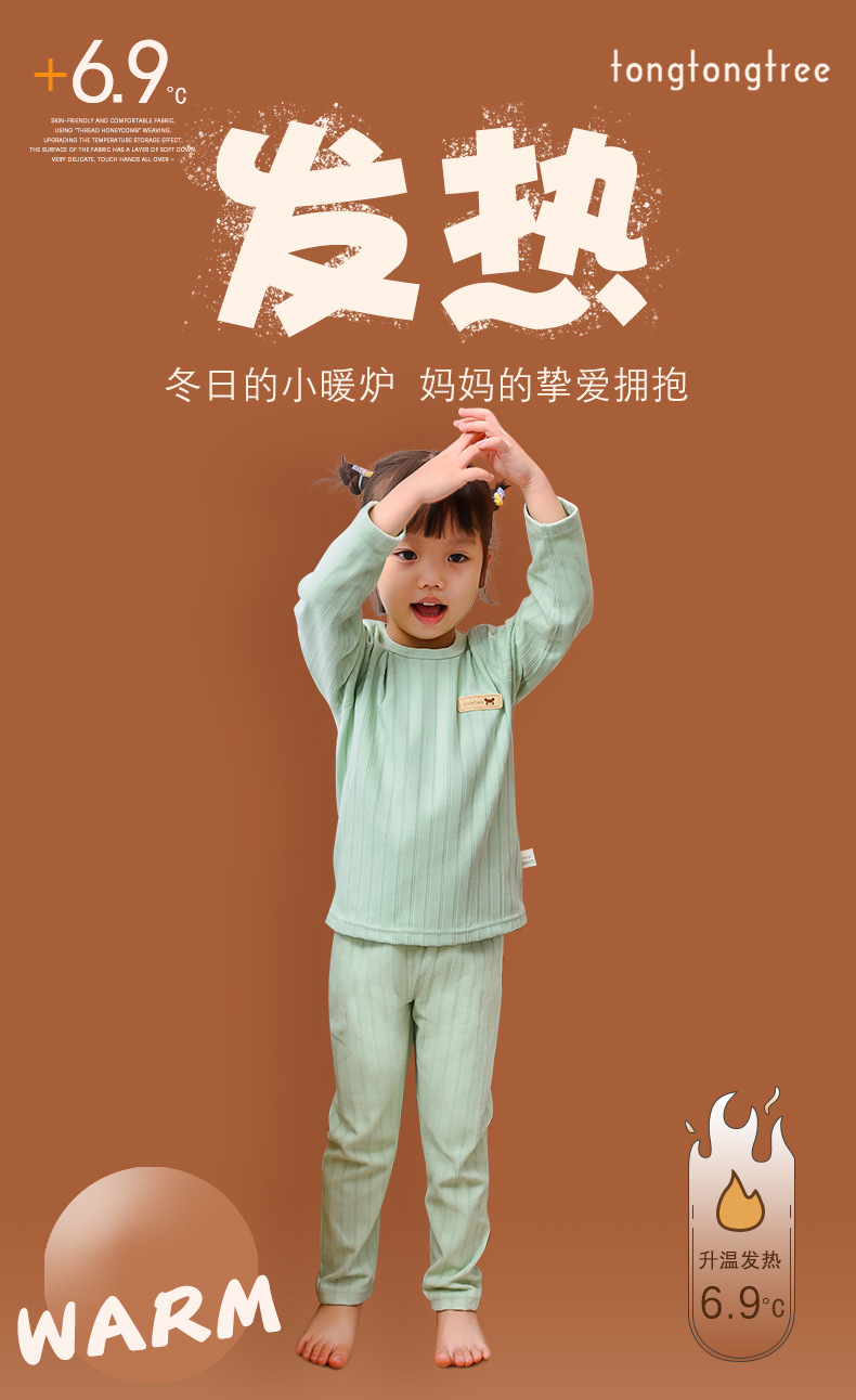 Tongtong tree class A 어린이 로마 벨벳 따뜻한 세트 단색 소년과 소녀 가정용 의류 고탄성 편안한 열 속옷스토어 가기