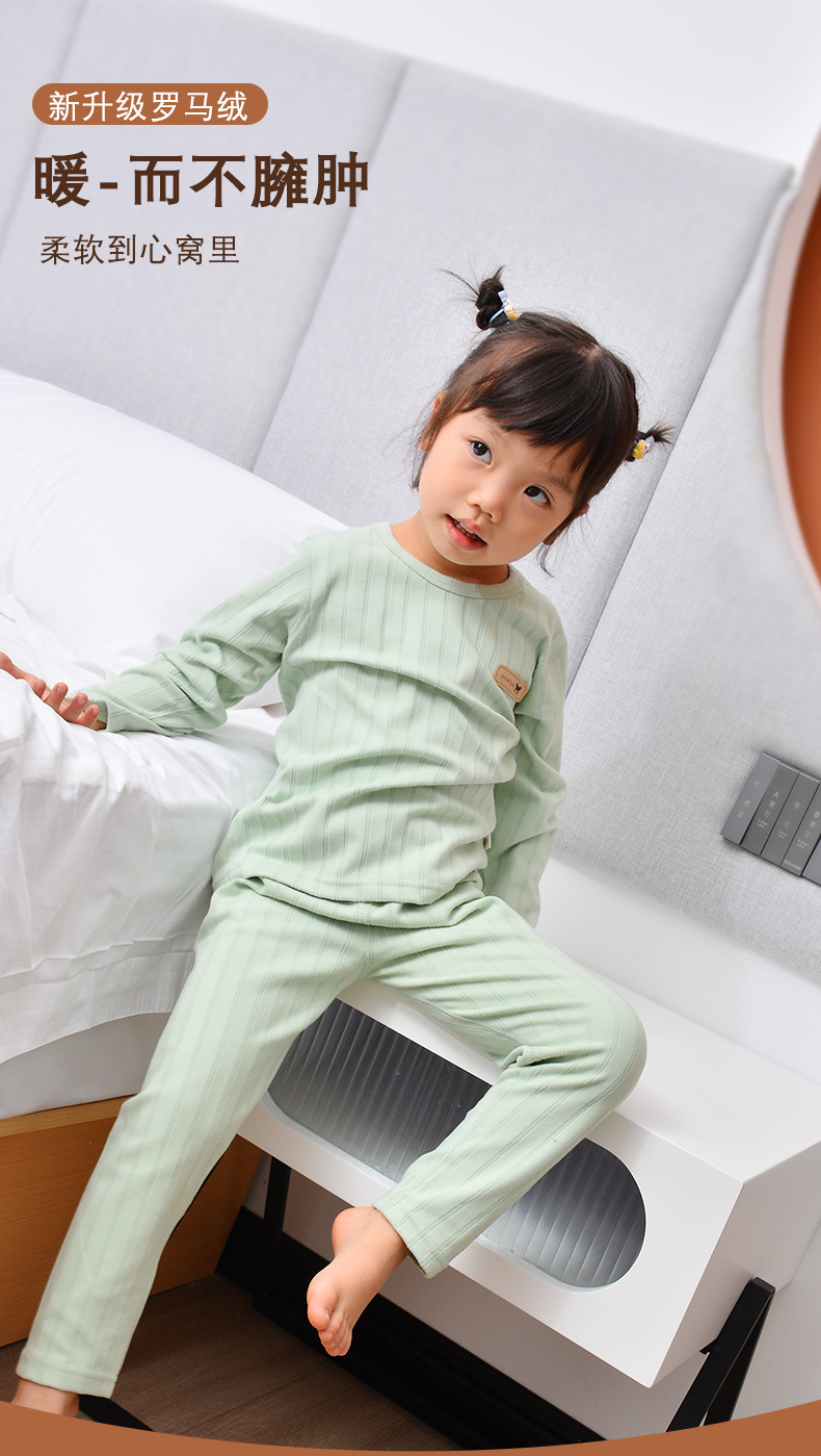 Tongtong tree class A 어린이 로마 벨벳 따뜻한 세트 단색 소년과 소녀 가정용 의류 고탄성 편안한 열 속옷