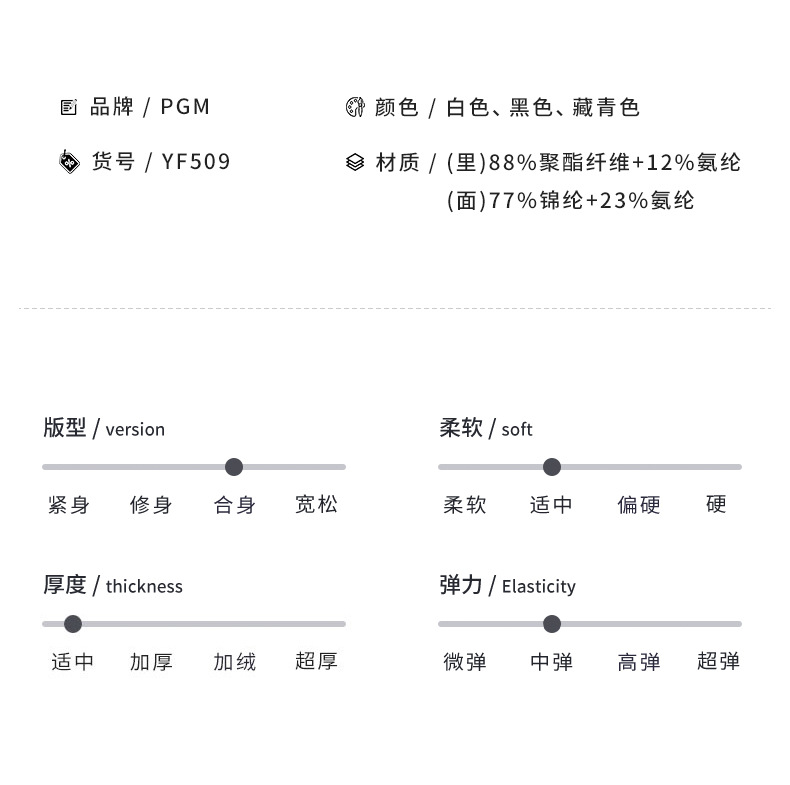 颜 色白色、灰色、黑色面 料聚酯纤维+氨纶