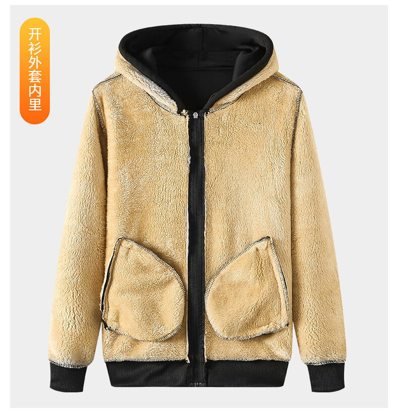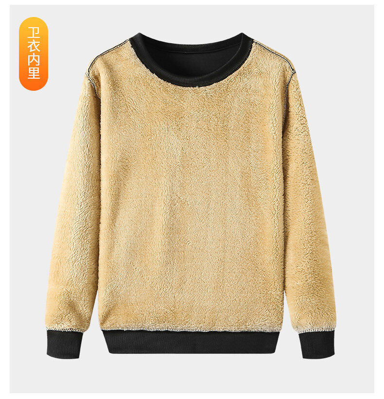 양고기 양털 세트 남자의 가을과 겨울 느슨한 플러스 사이즈 기모 두꺼운 따뜻한 후드 스웨터 스포츠 캐주얼 바지
