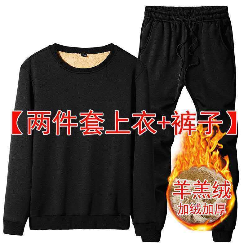 양고기 양털 세트 남자의 가을과 겨울 느슨한 플러스 사이즈 기모 두꺼운 따뜻한 후드 스웨터 스포츠 캐주얼 바지스토어 가기