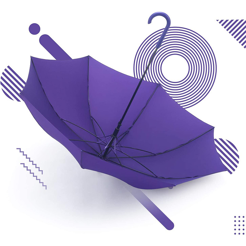작고 신선한 자동 개방형 전체 섬유 골프 우산, 방풍 직선 광고 우산, 맞춤형 로고 인쇄 가능, 긴 손잡이 우산