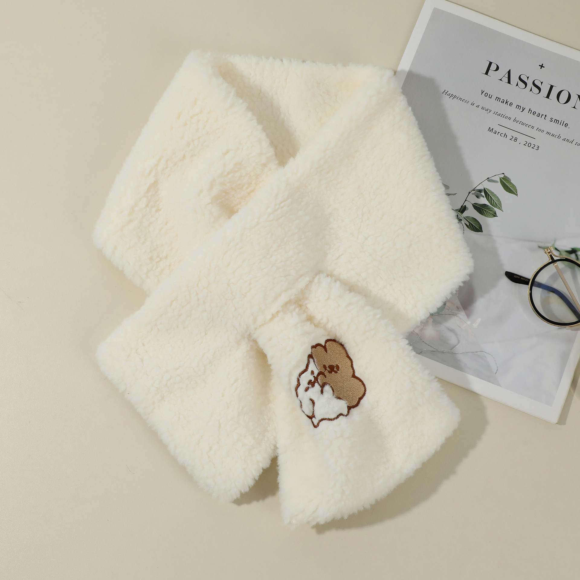 귀여운 곰돌이 봉제 인형 스카프 만화 소녀 감성 목도리 자수 한국 스타일 겨울 보온 두꺼운 스카프