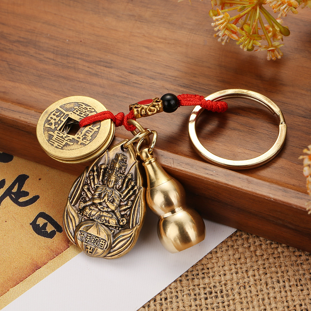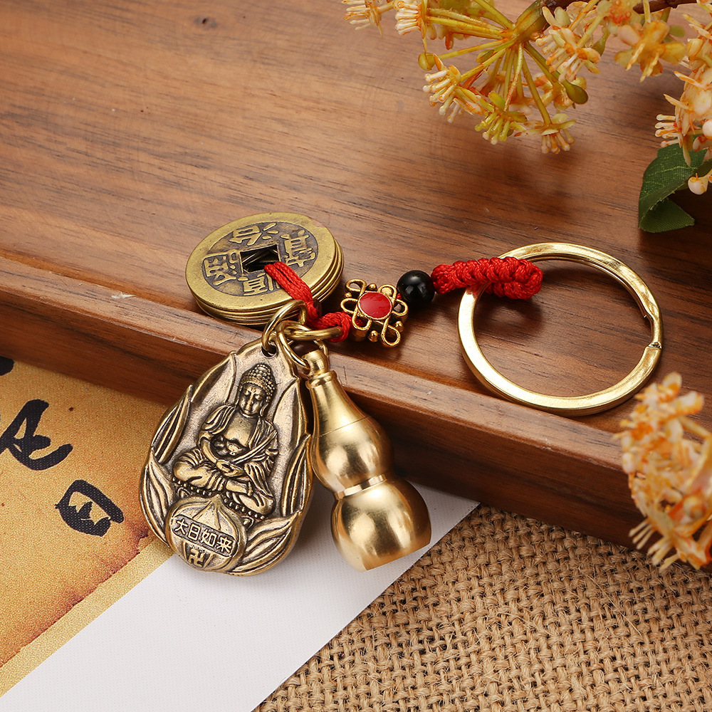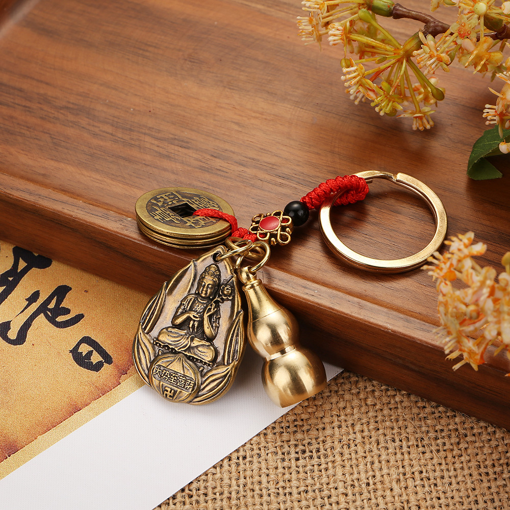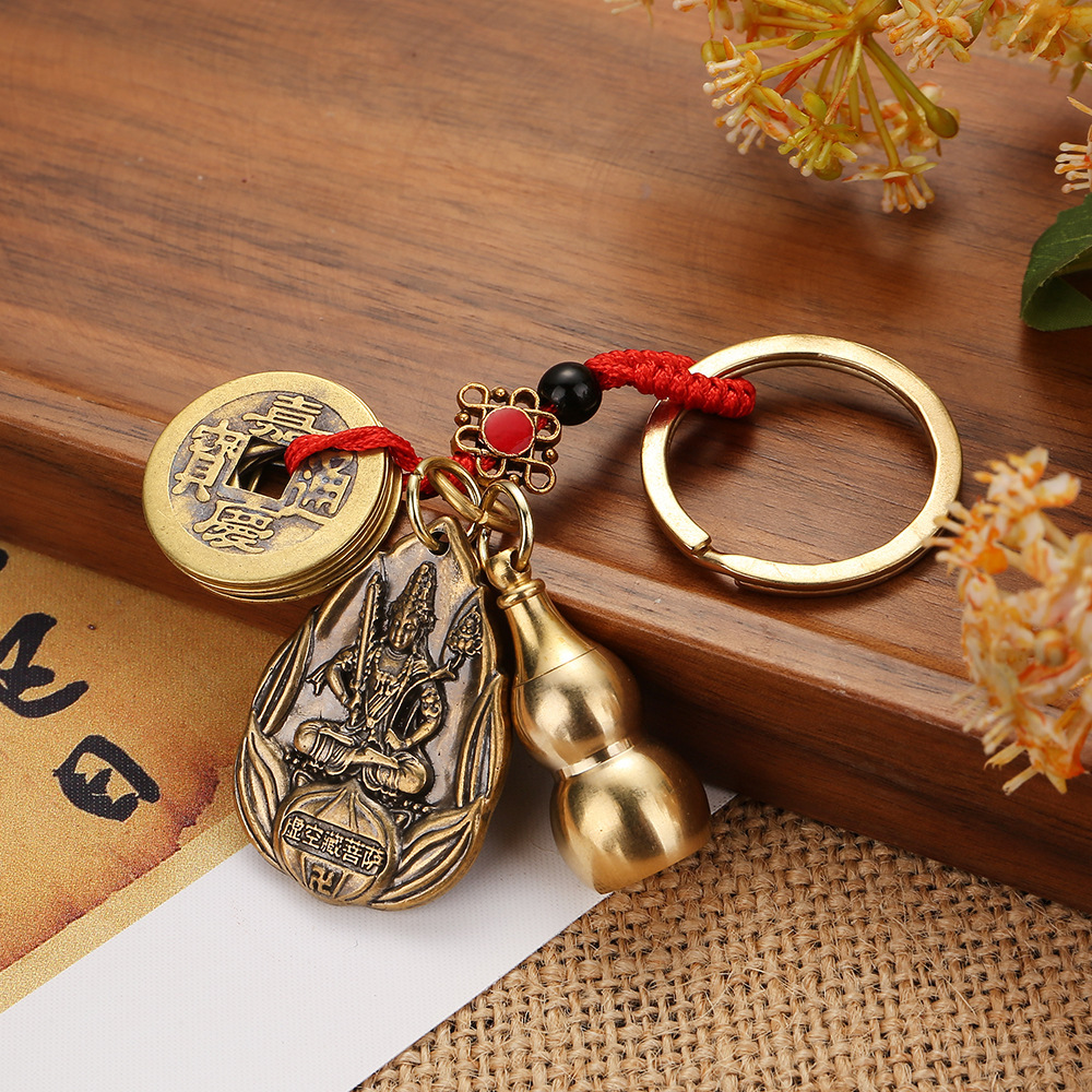 황동 8 조디악 후원자 세인트 키 체인 5 황제 돈 조롱박 자동차 펜던트 길조 매듭 선물 제조 업체 도매