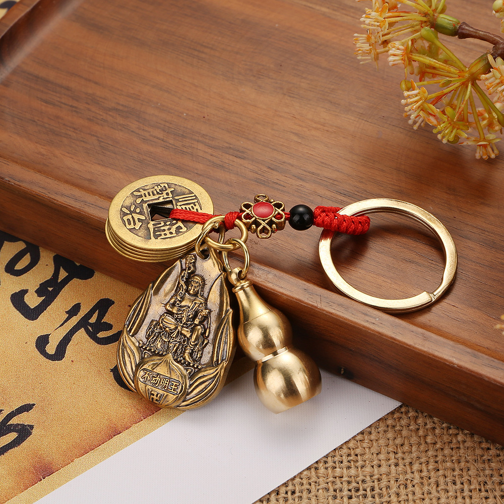 황동 8 조디악 후원자 세인트 키 체인 5 황제 돈 조롱박 자동차 펜던트 길조 매듭 선물 제조 업체 도매스토어 가기