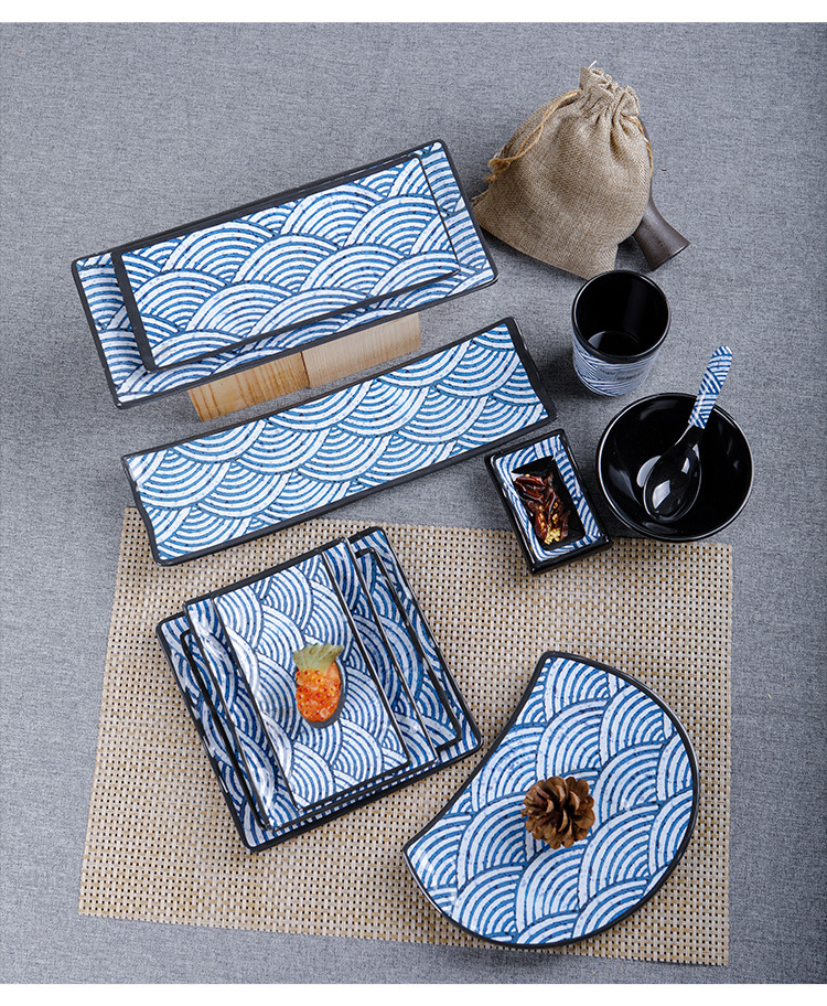 산청 멜라민 수지 모조 도자기 일본 초밥 접시 일본 식기 대형 직사각형 바베큐 접시