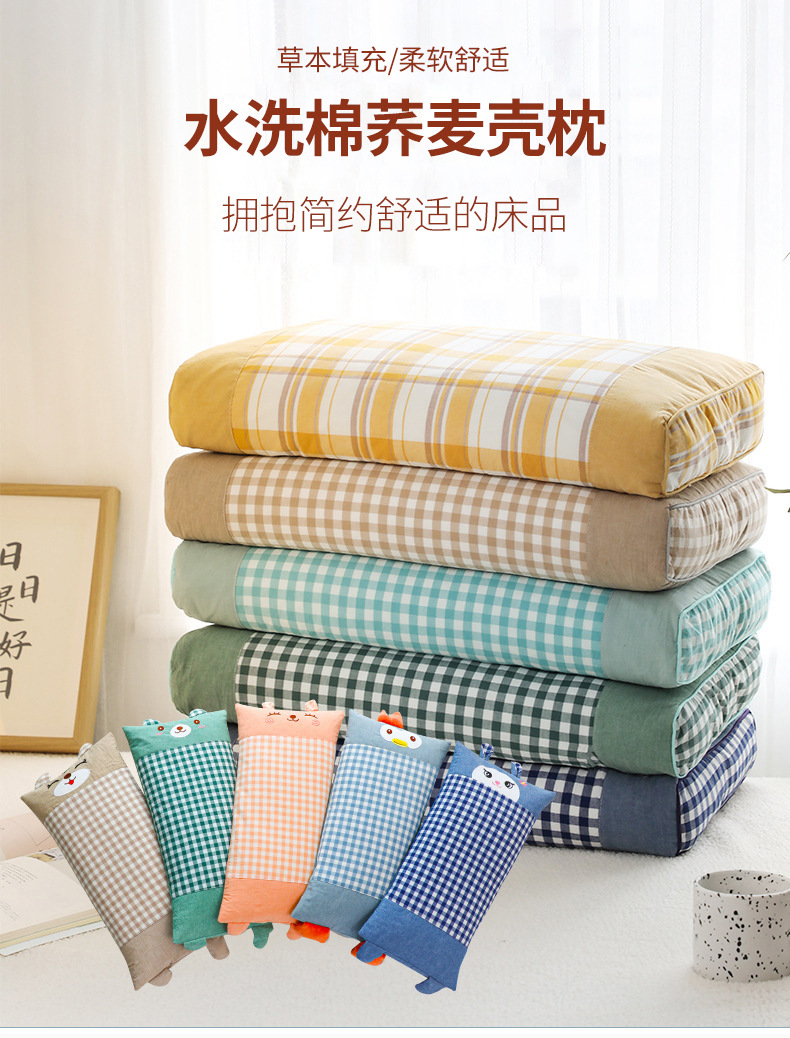 베개 여름 메밀 베개 성인 가정용 격자 무늬 베개 더블 내부 코어 워싱면 베갯잇 귀여운 메밀 껍질스토어 가기